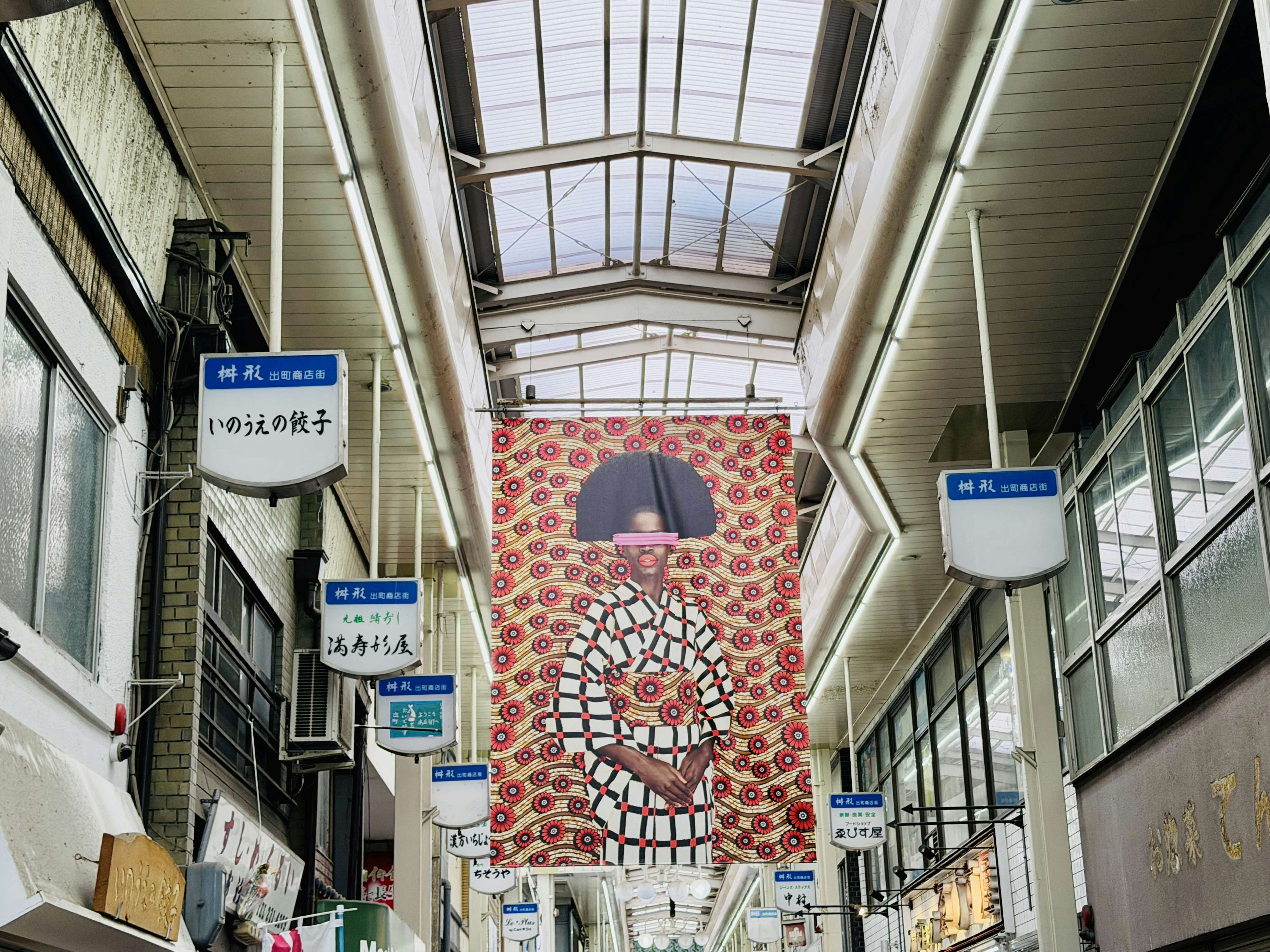 いっぽう出町桝形商店街では、「More Than Half」シリーズを展示。ふたつの文化にまたがるアイデンティティを持つプレイジアン(アフリカンやアフリカン・アメリカンなどの「黒人」とアジア人のミックス)の女性たちにフォーカスした新作が、巨大なバナーとなって商店街を彩る。