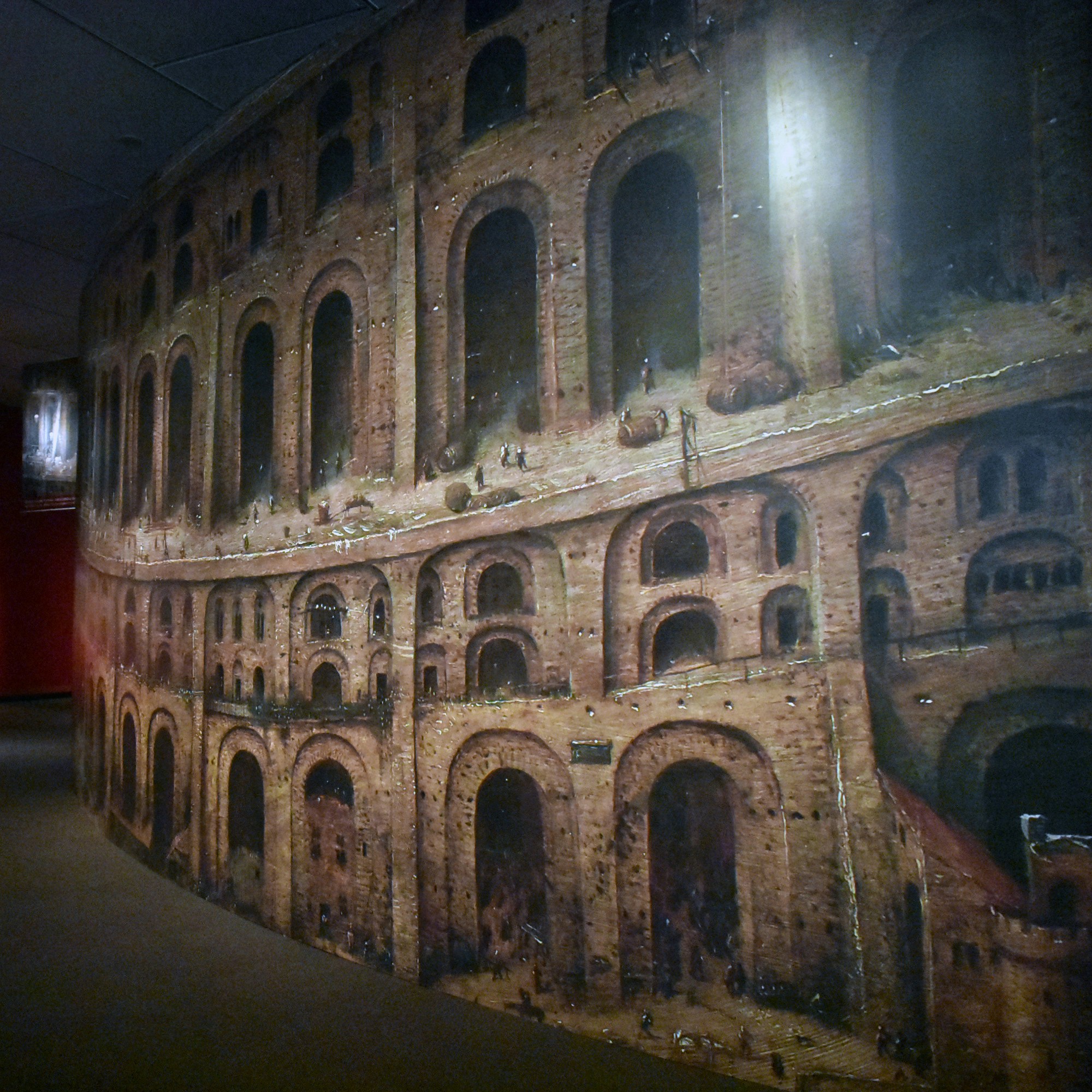 また、本展タイトルにも冠されたブリューゲル《バベルの塔》は、言うまでもなく展覧会最大の目玉だ。「ノアの箱船」で知られるノアの子孫が、天まで届く高さの塔を建てようとするも、神の怒りを買い、それまで同じ言語で話していた人々に異なる言葉を話させ、塔の建設を中断させた、というストーリーはあまりにも有名である。ブリューゲル以前にも「バベルの塔」はさまざまに描かれていたが、ブリューゲルの描いた塔は、それまでのこじんまりとしたものではなかった。
