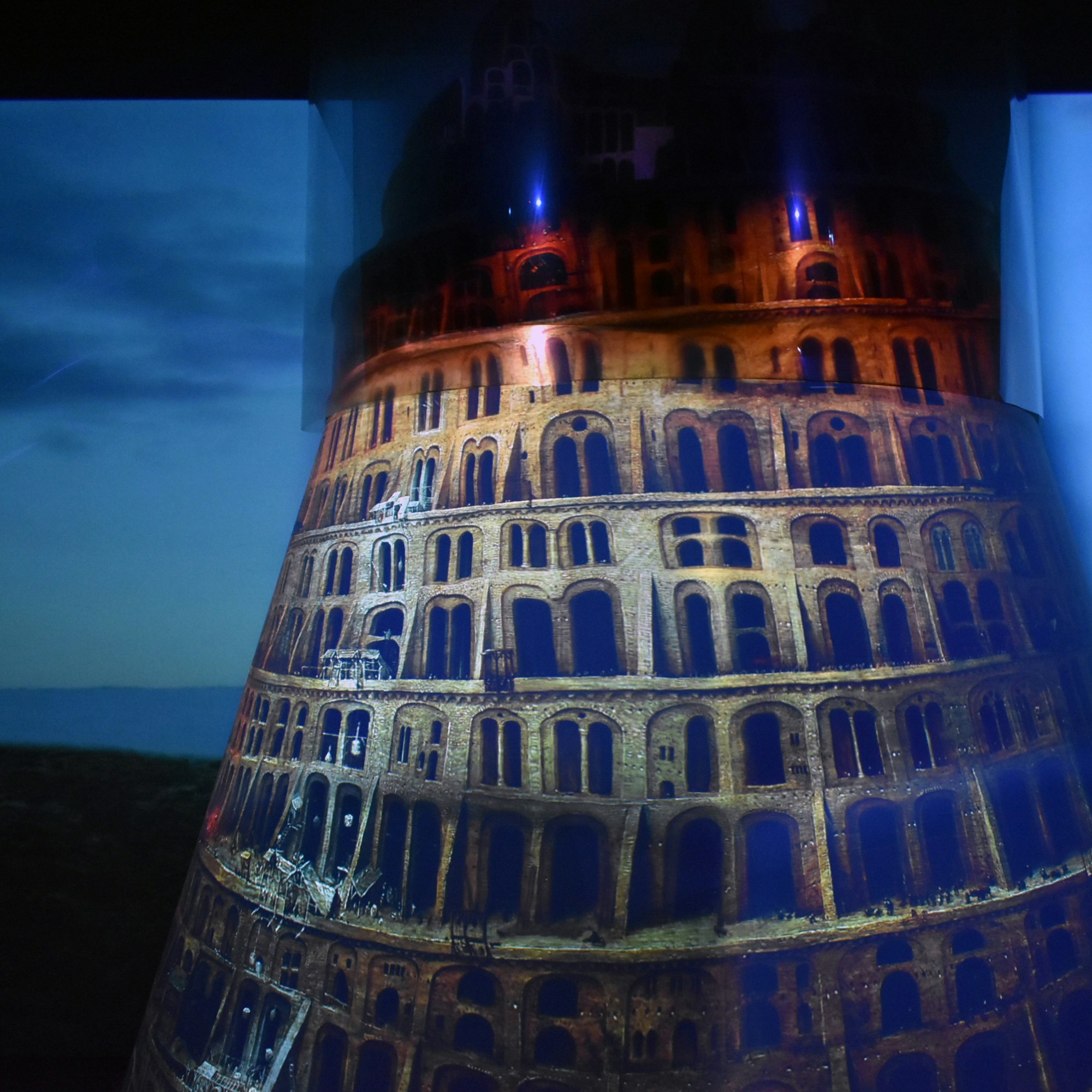 なお今回は、東京藝術大学COI拠点がオランダ芸術科学保存協会と連携し、《バベルの塔》のクローン文化財(高精細複製画)を制作。縦横がそれぞれ実物の300パーセントという大きさのものが、実物と同じ展示室に展示されているので、作品細部はこちらでチェックするという楽しみ方もできる。また、上野の「東京藝術大学COI拠点 Arts & Science LAB,1F エントランスギャラリー」では、《バベルの塔》を3メートルを超える大きさで立体化。プロジェクションなども使用し、昼と夜、それぞれで異なる塔の様子を生み出し、新たな鑑賞体験を提示する。
