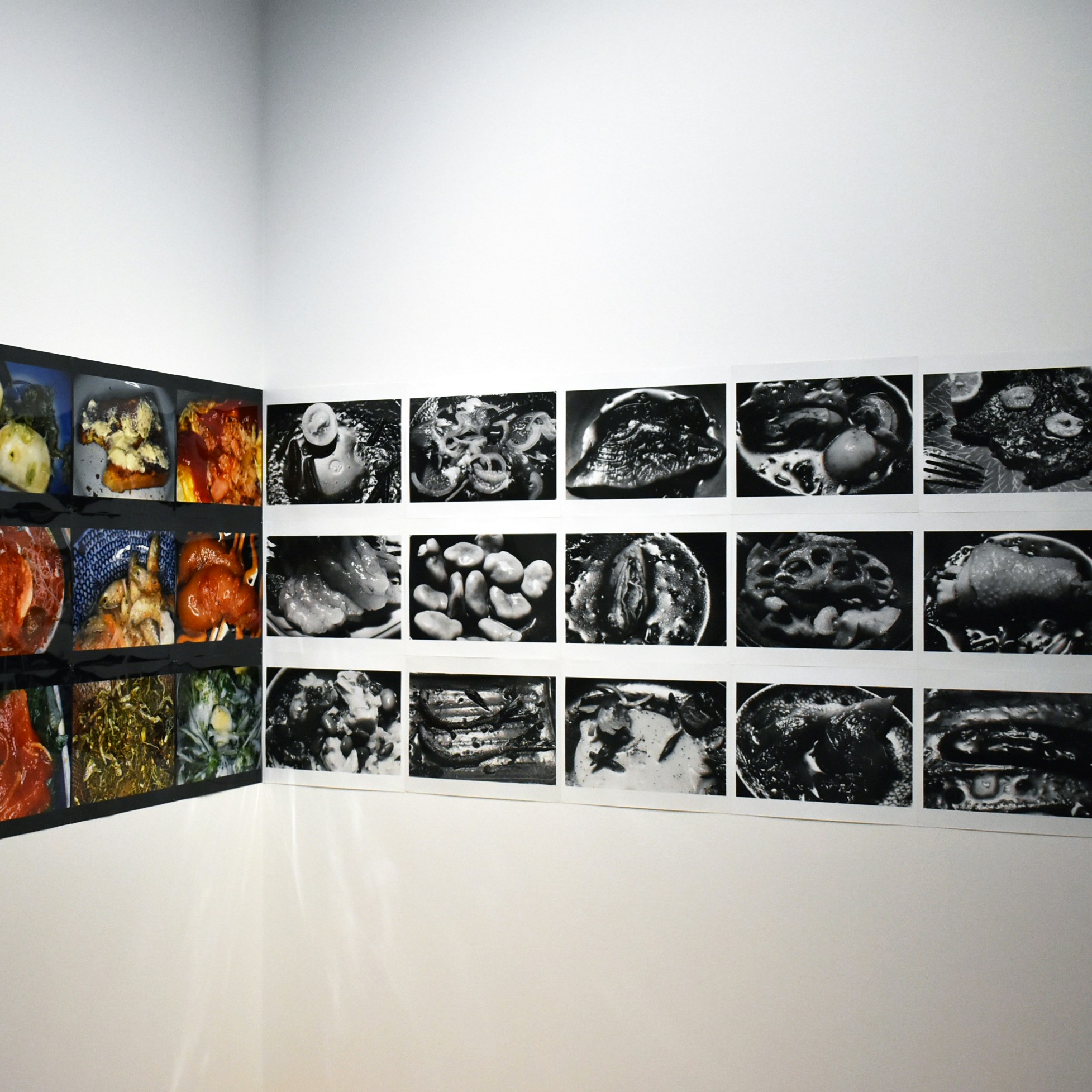 そのほか、陽子夫人が元気だったときと、入院中の一時帰宅のときにつくった料理の写真を並べて展示する「食事」や、死後に空や身の回りの品々を撮影した「空景」「近景」、陽子夫人がもらってきた愛猫を写した「いとしのチロ」などのシリーズも展示。