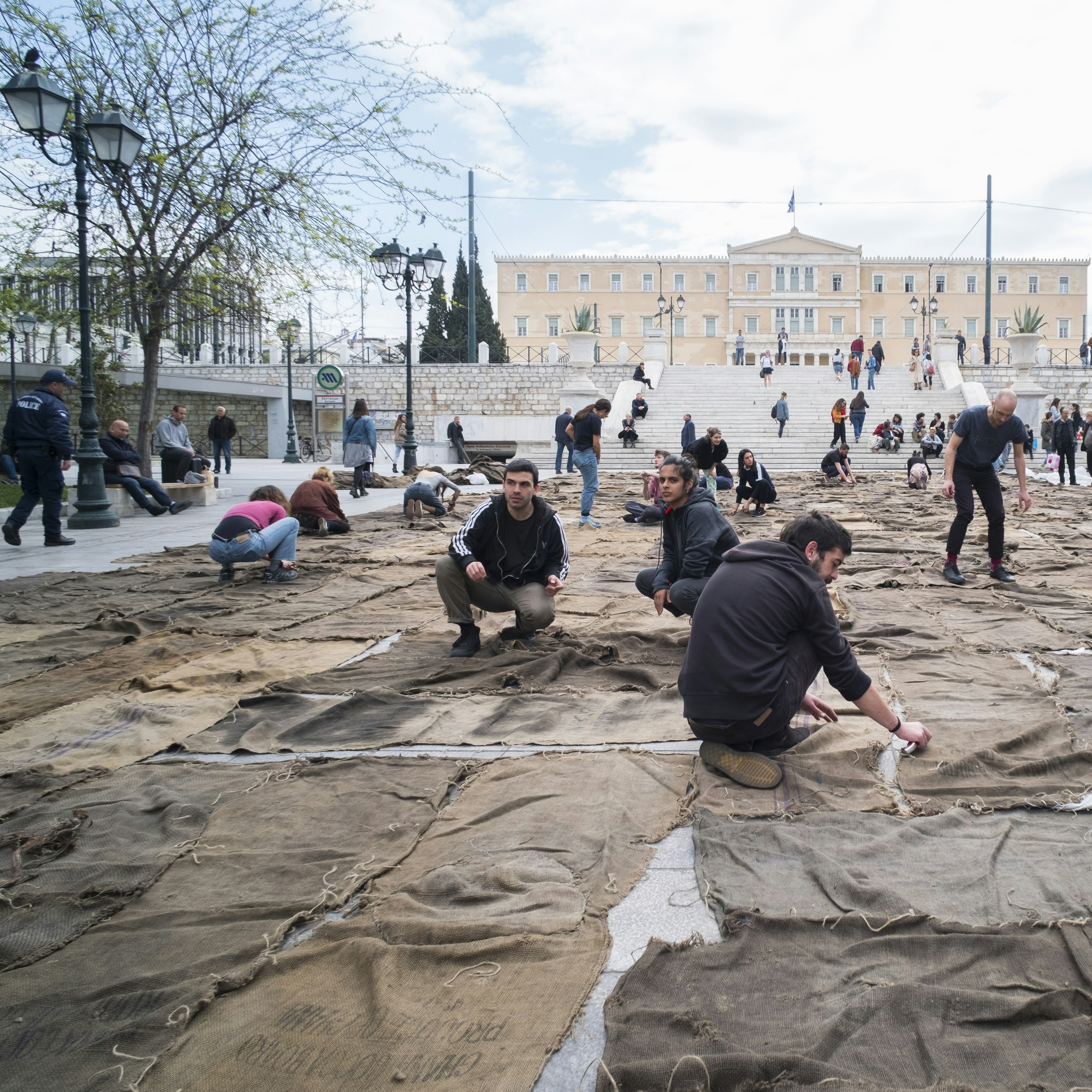 加えて、アテネは歴史的建造物の宝庫であり──カッセルにある虚構のパルテノン神殿に対して、やはり本物のパルテノン神殿の強度は計り知れない──これに真正面から挑むよりは、むしろ現在の「現在性」を圧縮する方向に舵を切ることも頷けはする。アテネにおいては、キャプションは英語とギリシア語で素っ気なくテキストが書かれているのみで(このキャプションに作家の国籍が書かれていないことも重要に思えるが、いっぽうでギリシア国籍の作家かどうかを撹乱する意図もあるように感じる)、羊皮紙にも似たその紙は床にだらしなく置かれ、作家の名前が書かれた大理石によってかろうじて留まっている。この措置はアテネのみであり、カッセルではキャプションが通常の形式であるうえ、国籍も明記されていた。これらは、人と作品の流動性/故郷喪失として重ね合せるキュラトリアルの意図ではないかと考えることも可能だろうが、果たしてそれが成功しているのかと言われれば、首肯しがたい。