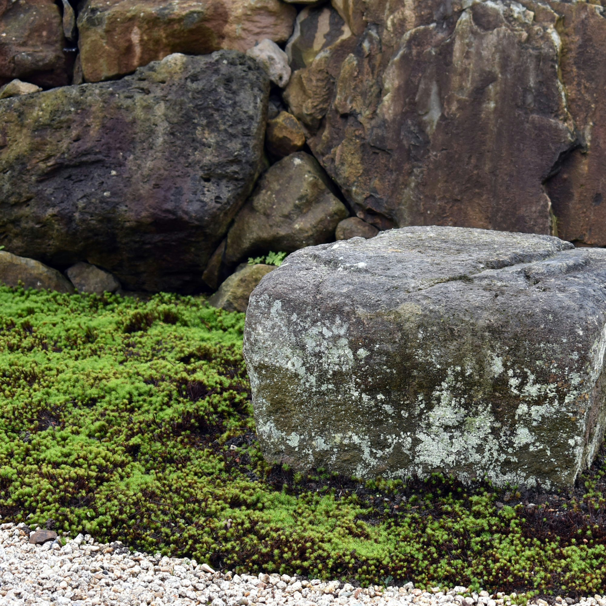 敷地の中ほどには石舞台があり、石橋の軸線は春分秋分の朝日が相模湾から昇る軸線に合わせて設定されている。