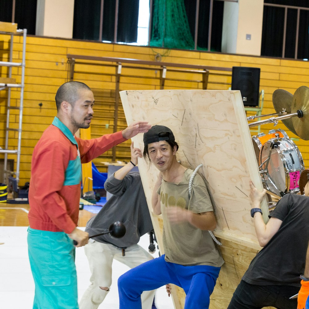そういった人々のアクションから生じるのは、じつに破天荒な大騒ぎだ。一人の少女がタワーから産み落とされたかのごとく登場する冒頭では、まるで巨大なタワー自体の夢を覗き込んでいるかのような奇妙な感触に、筆者の心は静かにざわざわと揺れた。かと思えば、contact Gonzoはいつものメンバー入り乱れての“どつき合い”を、これまで見たことのないアクロバティックな次元で展開し、大いに驚嘆させてくれる。ネタバレになるのでこれ以上は伏せるが、もしもタワーを箱に例えるならば、文字通り「おもちゃ箱をひっくり返したような」めくるめく展開が約80分にわたって続けられた。この日が初の通し稽古ということもあって細部にはまだ荒々しさが感じられたが、むしろ、このよい意味での野蛮さが本番にも引き継がれることを熱烈に期待したい。