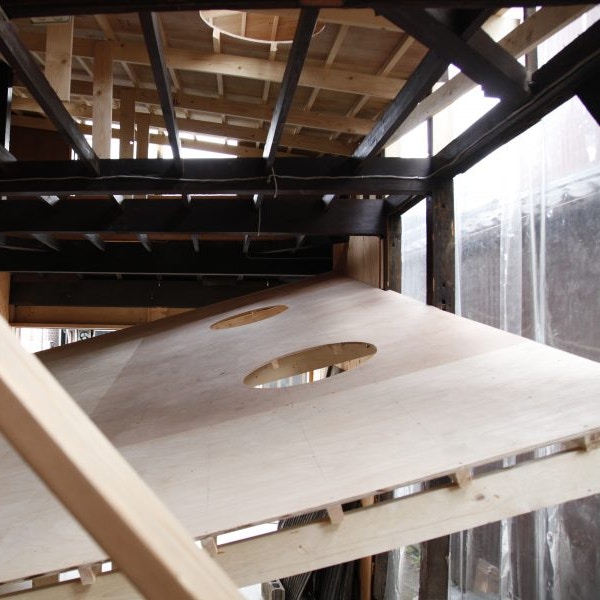 「障害の家」プロジェクトは、2015年より作家の大崎晴地が建築家と協働して取り組んでいるもので、バリアフリー化していく社会のなかで、「家」を焦点としながら、あえてバリアを積極的に構築することでバリアの意味を問い直すという意欲的な試みである。17年3月には北千住で1軒の建物を使用し、構造的にバリアを組み込んだ家を設計、展示している。今回は、東京都の再開発の対象として解体が決定している京島の長屋が会場となり、展示が行われた。