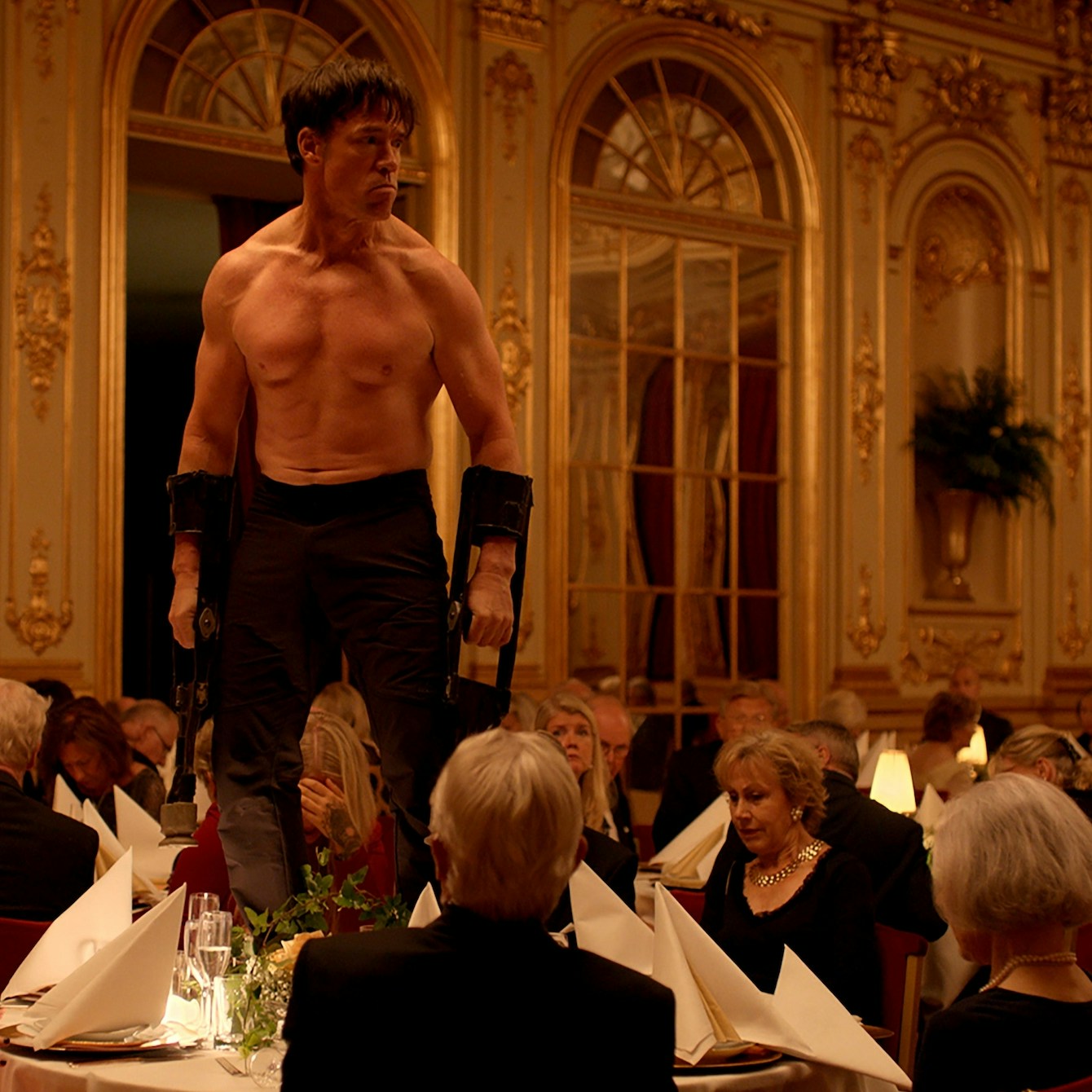 クリスティアンが、作品のコンセプトについて話す場面の描写は秀逸だ。彼はまず、「関係性の美学」だの「拡張された場」だのといった、美術内の言説を口にしてしまうが、すぐにそれを捨てて、彼なりの本音で語ろうと言葉を選ぶ(しかし、いつもうまく伝わらない)。コンセプチュアル/知性/現代美術の世界と、本音/本能/現実世界との対比は、クライマックスとも言える、ガラパーティーで行われた獣になりきる人間のパフォーマンスの場面で、見事に描き出される。言うまでもなくこれは、たんなる現代美術の世界の内輪話を越えて、政治的正しさや多様性というイデオロギーに囚われつつも現実には何も行動を起こせない、現代の多くの人々への鋭い風刺となっている。