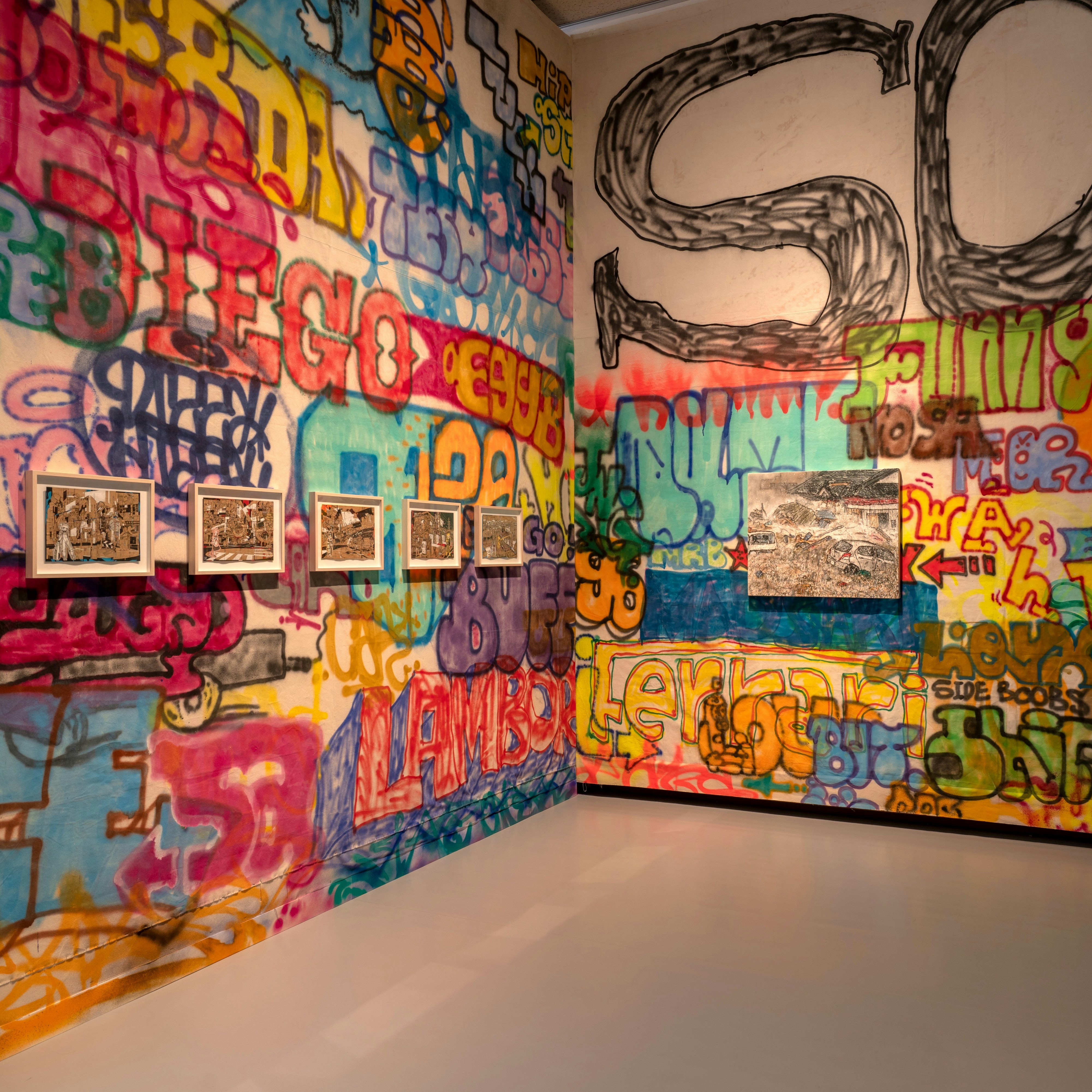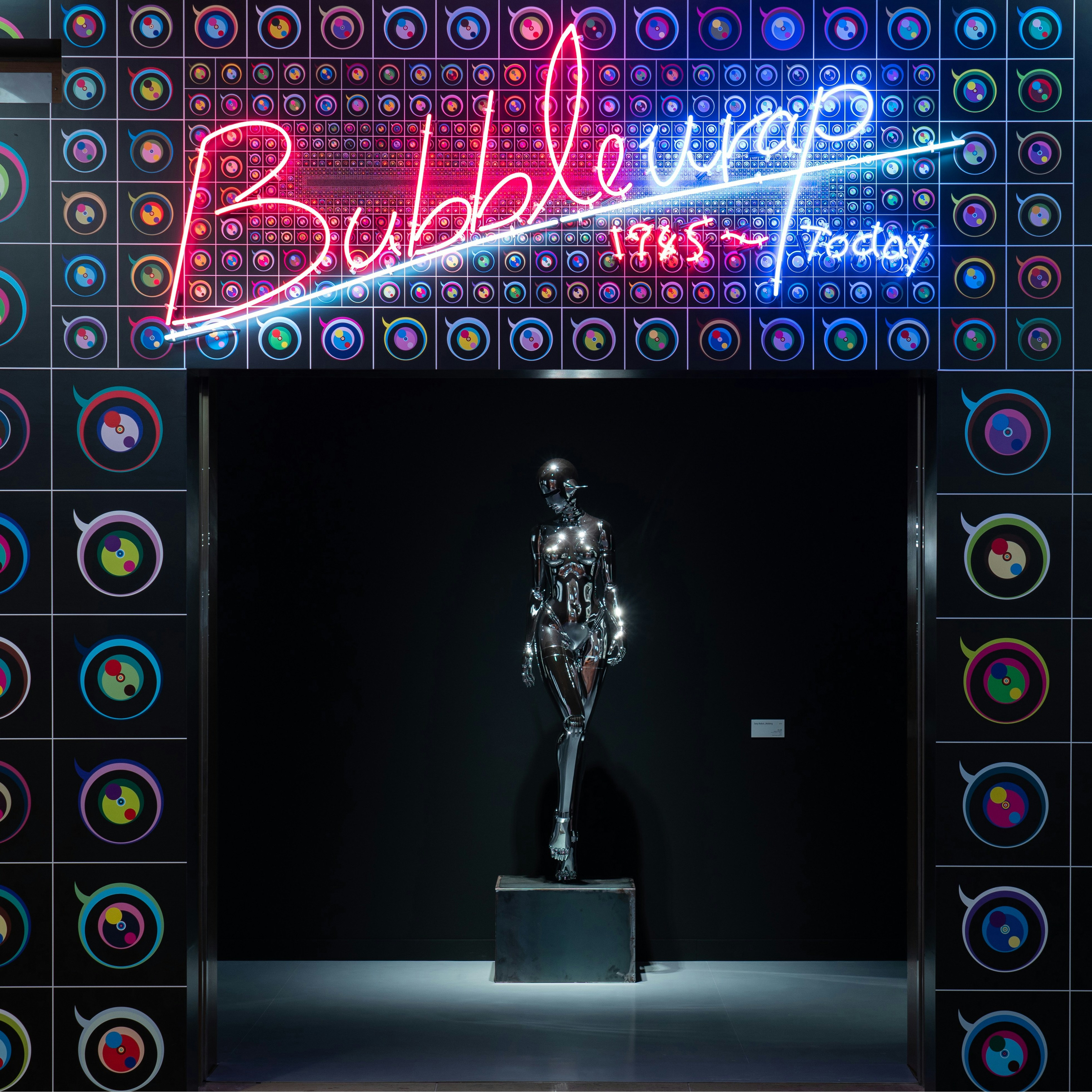 キャッチーなタイトルである。展覧会メインビジュアルには、「Bubblewrap」と輝くネオンがあり、その下に、エグゼクティブプロデューサー兼本展キュレーターである村上隆が佇んでいる。グラフィックデザインを手がけているのはグルーヴィジョンズ(1993年設立)だ。展覧会のタイトル全文を改めて書いておくならば、