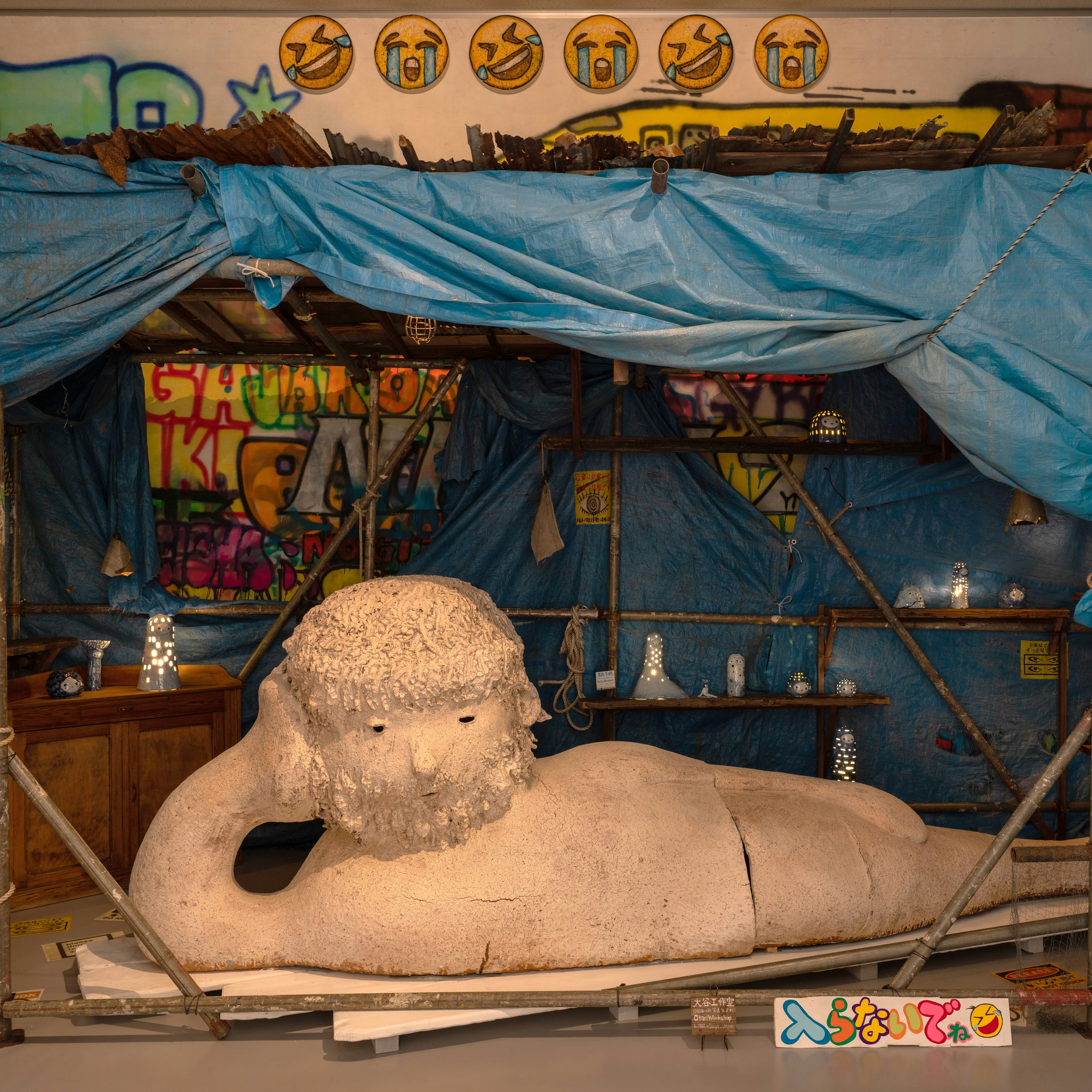 こうして、日比野克彦の段ボールによる作品を以ってして「バブル経済と西武セゾングループ」を代表させ、その悲哀を肯定的に読み取ろうとする身振りが、「生活工芸」「坂田の清貧の美」から遡って再解釈され直していることが了解される。バブルの渦中も、以後も、そしてそれ以前も失われずに通底している日本の「清貧を是とする美意識」が展覧会のそこかしこから噴出する。バブルラップはここにきて時代的な輪郭を失い、ひとつの道徳原理として、『もののけ姫』のシシガミのように、あるいは『エヴァンゲリオン』の人類補完計画のように、不定形な姿で個々の作品たちを貫き、すべてを包んでいく。
