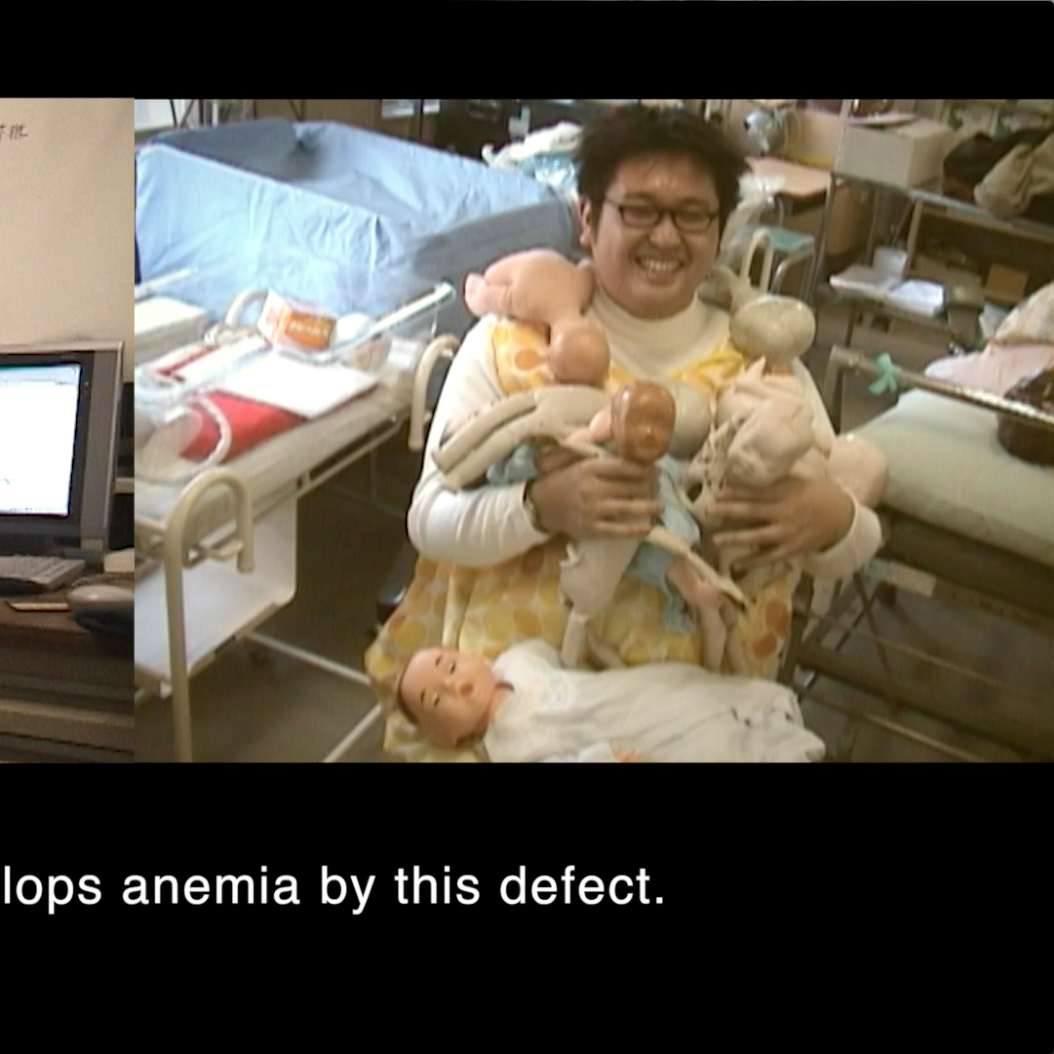 いっぽうで《俺の産んだ子》と「未来図」シリーズが映し出す妊娠する男性の姿は単純に「楽しそう」にみえる。SEXや女性との関係に興味を持たない男性S.K.氏が宝くじに当たったお金で最先端医療の「男性の妊娠」のドキュメンタリー風映像と、この事例を淡々と医学の専門家として解説する映像が同時進行していく《俺の産んだ子》。岡田自身の出産前夜のセルフポートレイトと合成させてつくり出した、若い男性たちが妊娠によりお腹を膨らませた「妊夫」のポートレイト写真「未来図」シリーズ。これらは「女性である私が女性のストーリーを伝えるより、むしろ性を転換し、男性にその立場を肩代わりさせることでより広く多角的に考えられないだろうかという試み」(*2)と岡田本人が述べるように、男性が自身の身体変化を通して、ジェンダーに対して意識を促す作品である。