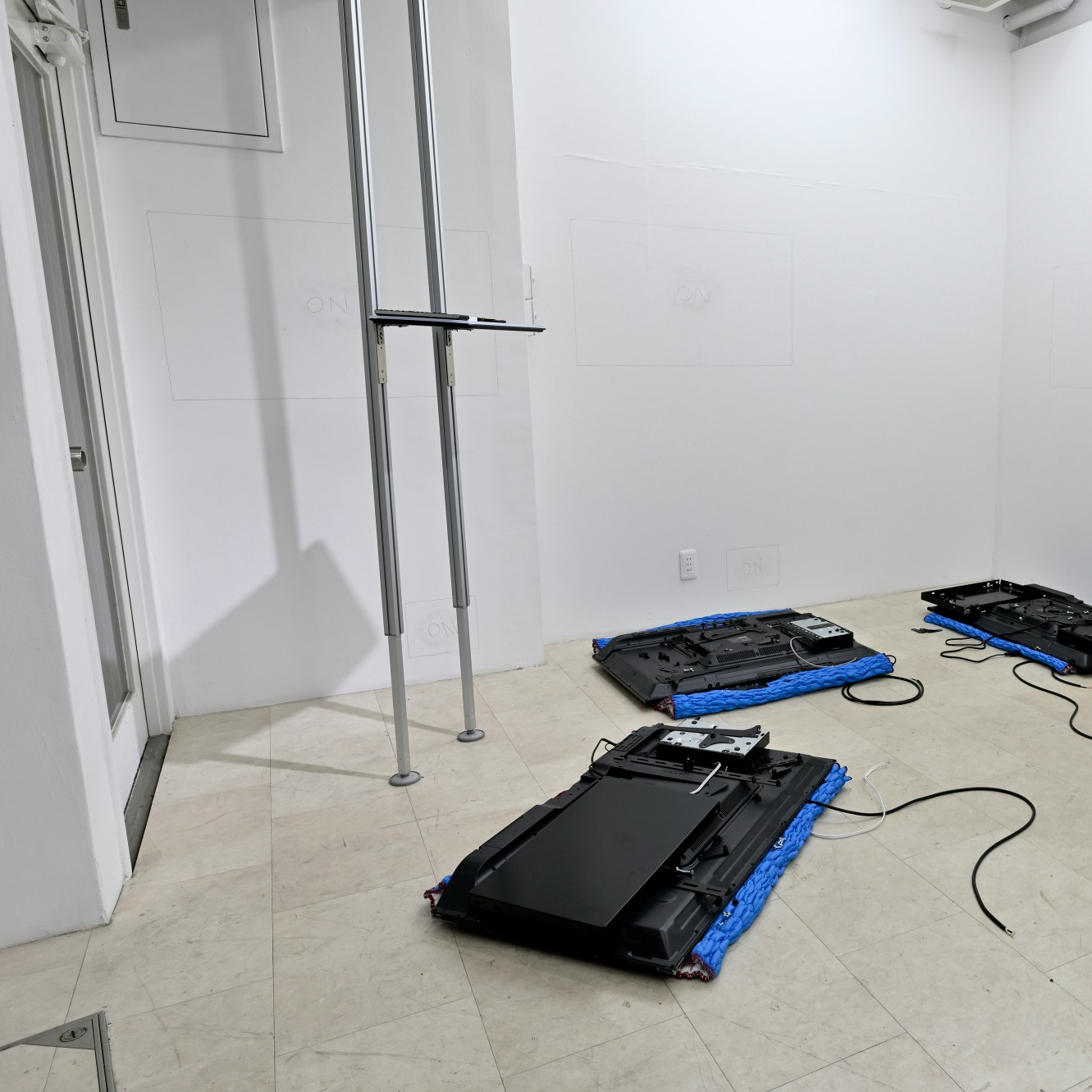 ふたつのマイクロポップ展にも参加した泉太郎は、「Try the Video-Drawing」のために制作した《そんな小さな息で》において、床に伏せられた映像再生機器とギャラリストを延長コードでつなぎ(ながら切断し)、展覧会における「通電」「映像の再生」「作品売買」といった約束事を組み替えるラディカルな操作を提示した。
