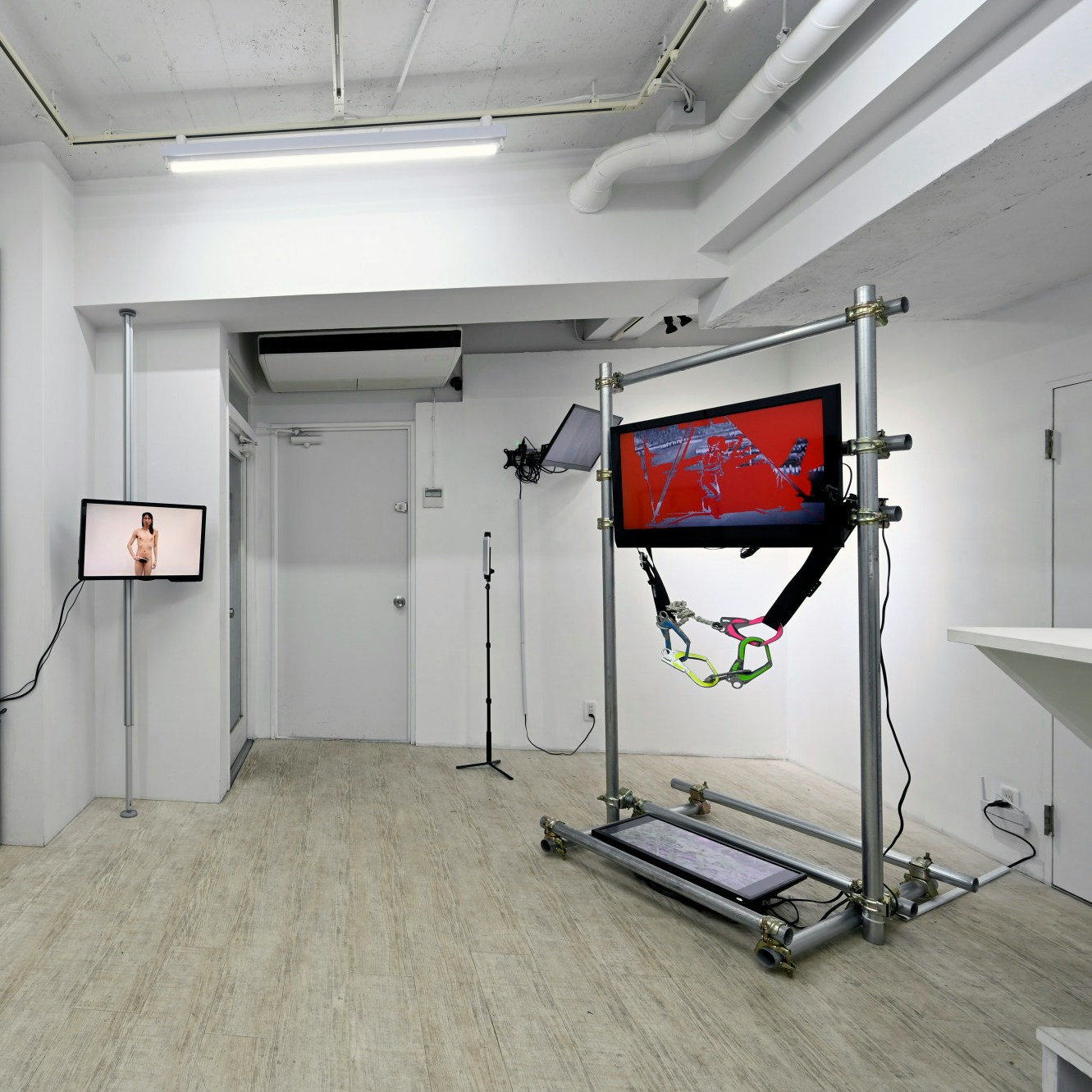 だが泉と比較して、他のアーティストが、ギャラリーにおけるオーソドックスな展示方法を採用したことは批判的にとらえなければならないだろう。壁面に固定されたディスプレイの正面に立つことで、違和感なく映像を鑑賞できるという点において、多くの作品はあまりにオーセンティックかつ非ドローイング的だ。そこに映し出された映像が軽やかで遊戯的である場合にこそ、非日常的なディスプレイの壁面固定は──例えば水戸芸術館に展示された有馬かおるのドローイングや田中功起のインスタレーションと比較して──絵画的な方法で映像(とそこに映し出された事象)を権威化する技法であることが強調されてしまう。