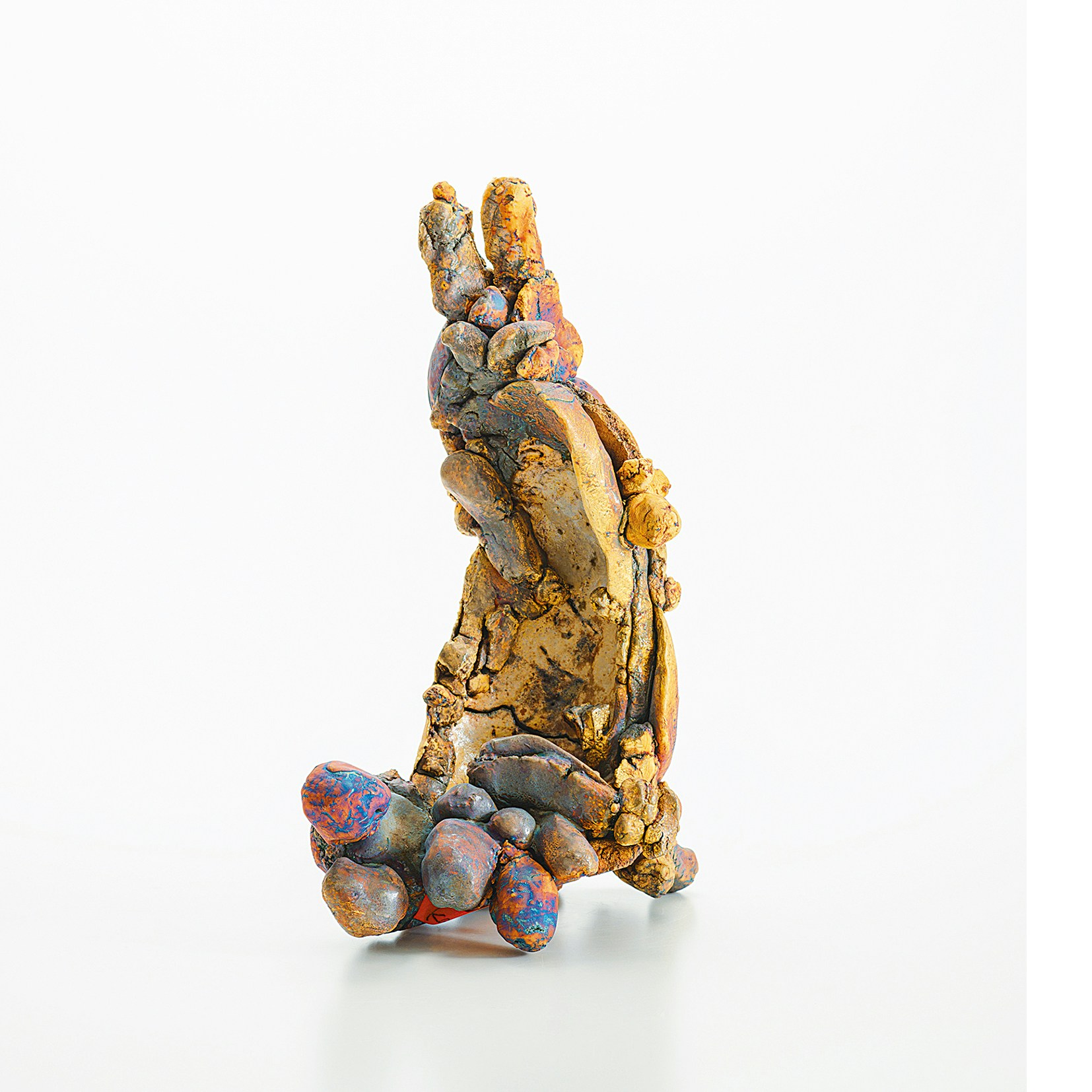 本欄で最初に川端健太郎を取り上げたのは、2013年の秋であった。それから8年、陶芸はますます現代美術界の一部となり、日本の1960〜70年代の現代美術が今更ながらグローバルな現代美術史へ登記される傾向につられるように、過去の「現代陶芸」の再発見・再評価が始まっている(例えば三島喜美代)。この状況の背景には、リーマンショック(2008)以降、投資筋や富裕層の金が、株や不動産よりも信頼できる資産を求めて、現代美術(と古美術)の世界に流入してきたことがある。その結果、近年の現代美術界は一種のバブル状態にあるわけだが、投資家は資産のプロフィールのひとつとしてアートを買うから、値下がりしない巨匠(生死不問)の作品が欲しい、と。が、そんな巨匠も作品も数が限られるので、次には美術史や陶芸史を繙き、数十年の経歴に相応しい値段が付いていない長命作家を探して投資対象とし、それでもまだ流れ込む金に対して売るモノが足りないと、比較的有名な中堅や期待の新人に順番が回る。「物」が足りなくなると絵画が流行るのが美術界の常だが、現在では、より物々しい芸術として陶芸が流行る。こうして桑田卓郎や安永正臣、そして川端もまた、内外の有名ギャラリーで発表し、値段が急上昇して旧来の陶芸画廊と国内コレクターは置き去りにされる、と。無論そこにはバブル経済に固有の危うさがあるが、個性際立つ日本の陶芸作家が、活動の舞台を世界へ広げて何が悪い。
