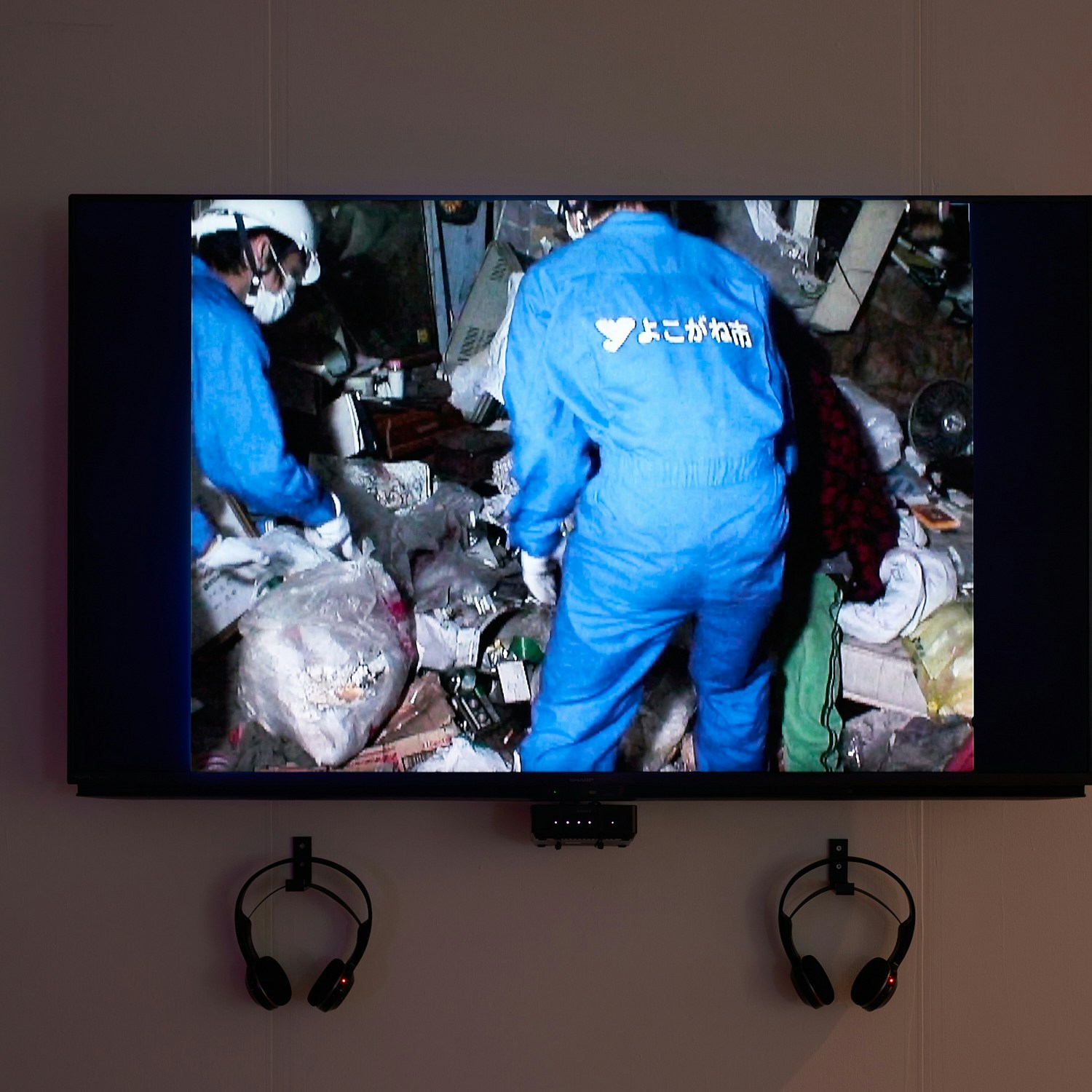 岡田の《翳りゆく部屋》は、「ゴミ屋敷の住人」を岡田が演じた映像作品だ。「ゴミ」という他者の評価に抵抗する住人の切実さが、滑稽さすらともなうかたちでアイロニカルに提示されていた。岡田が老齢の女性に扮したことも重要だ。若く美しい女性ばかりが、描かれる/映される対象となってきたのはなぜか。その根底にある規範と欲望に、本作は迫ろうとする。