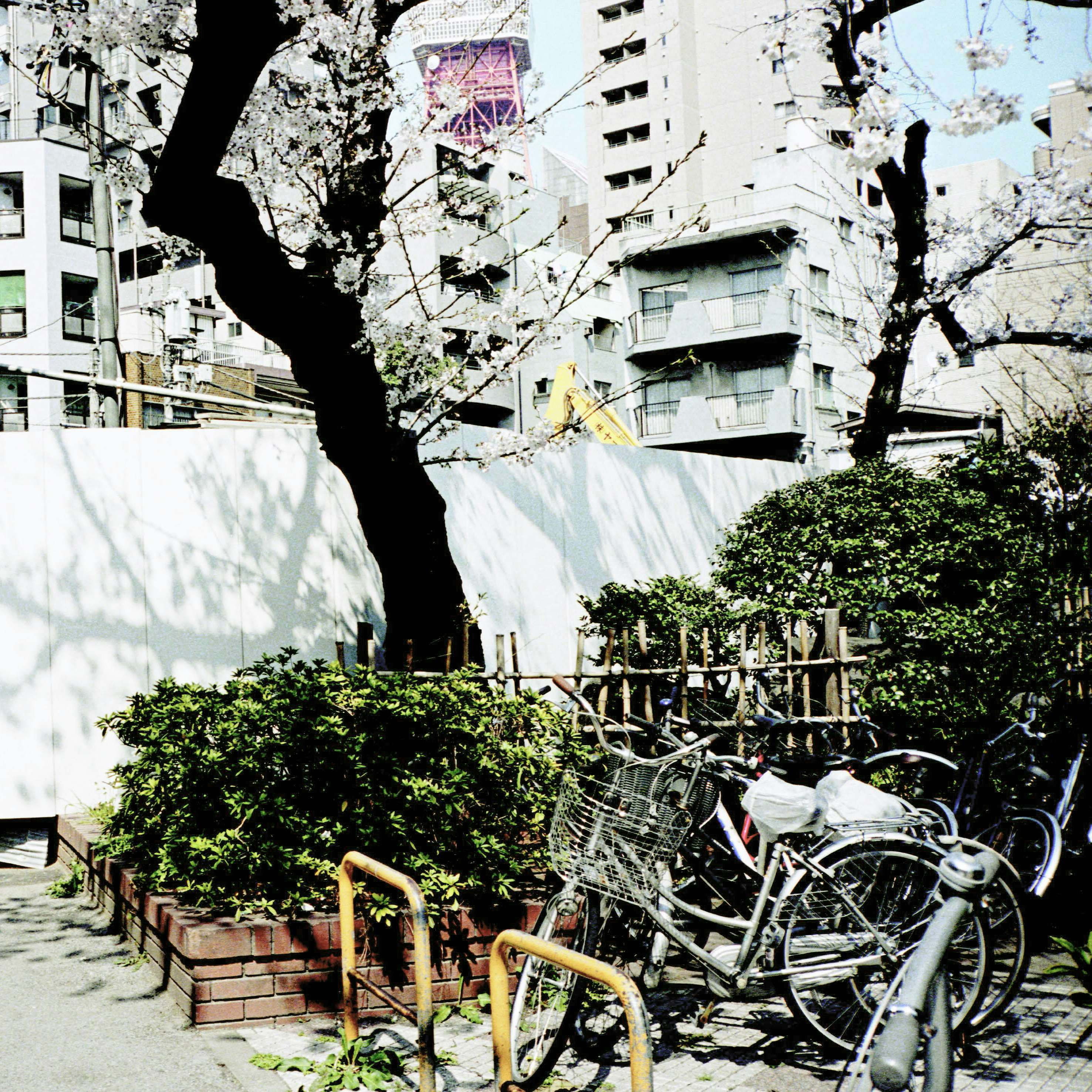 ところが、鷹野は満開の桜や青空の東京タワーを十分に画面内に収めていない。「あえて」それらを外したのではなく、おそらく手前の自転車も画面に収めた結果、こうなったのではないだろうか。また、こうした絵づくりに対する彼の美的判断力は、撮影時よりも写真を選ぶ際に発揮されているに違いない。画面右下に突如差し込まれた自転車のハンドルや、画面左側の歩道に駐輪された自転車を見ると、彼が実は路上駐車された自転車に関心を持っているのではないかとすら思われる。誰かがちょうど乗ってきたものなのか、あるいは街角に打ち捨てられているのか。鑑賞者は、求心的なモチーフを見つけられぬまま画面上を目で彷徨い、それに促されるように思考を緩やかにめぐらせる。