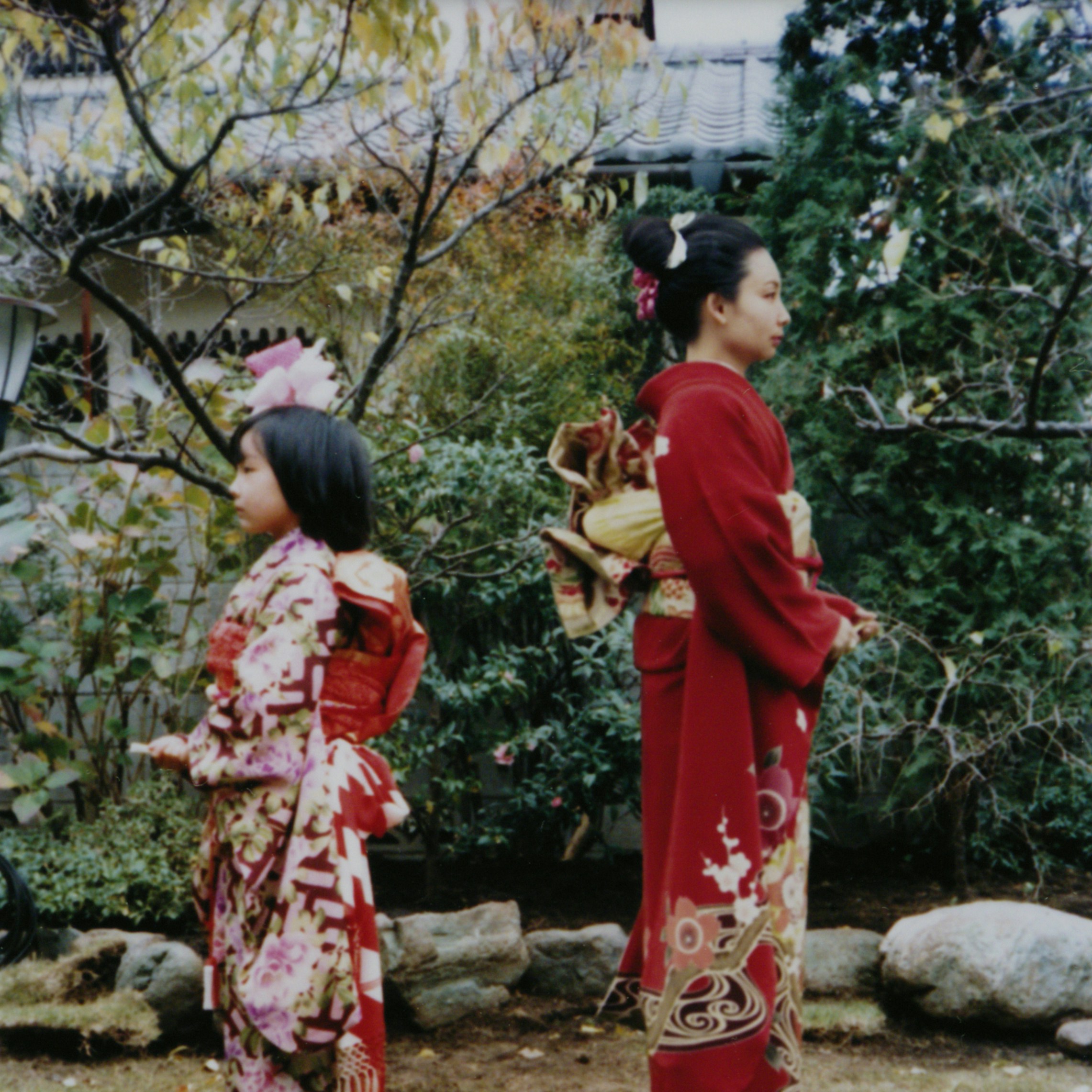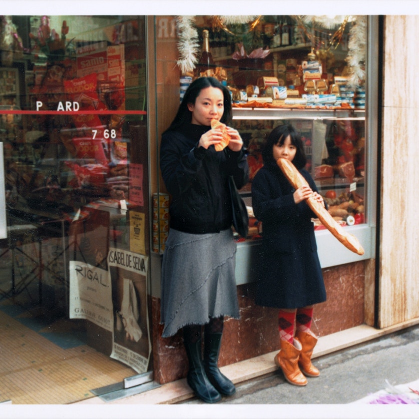 これらの写真の多くは、現在の自分を過去の自分の近くに配置する。晴れ着で背中合わせに立つ《1979 and 2006, Kitakamakura, Japan》(2006)、並んでフランスパンを食べる《1982 and 2005, Paris, France》(2005)、同じベッドで横になる《1984 and 2005, Richmond Hotel, France》(2005)など。これらは2人をきわめて親密に写しており、事情を知らなければ親子にしか見えないほどだ。