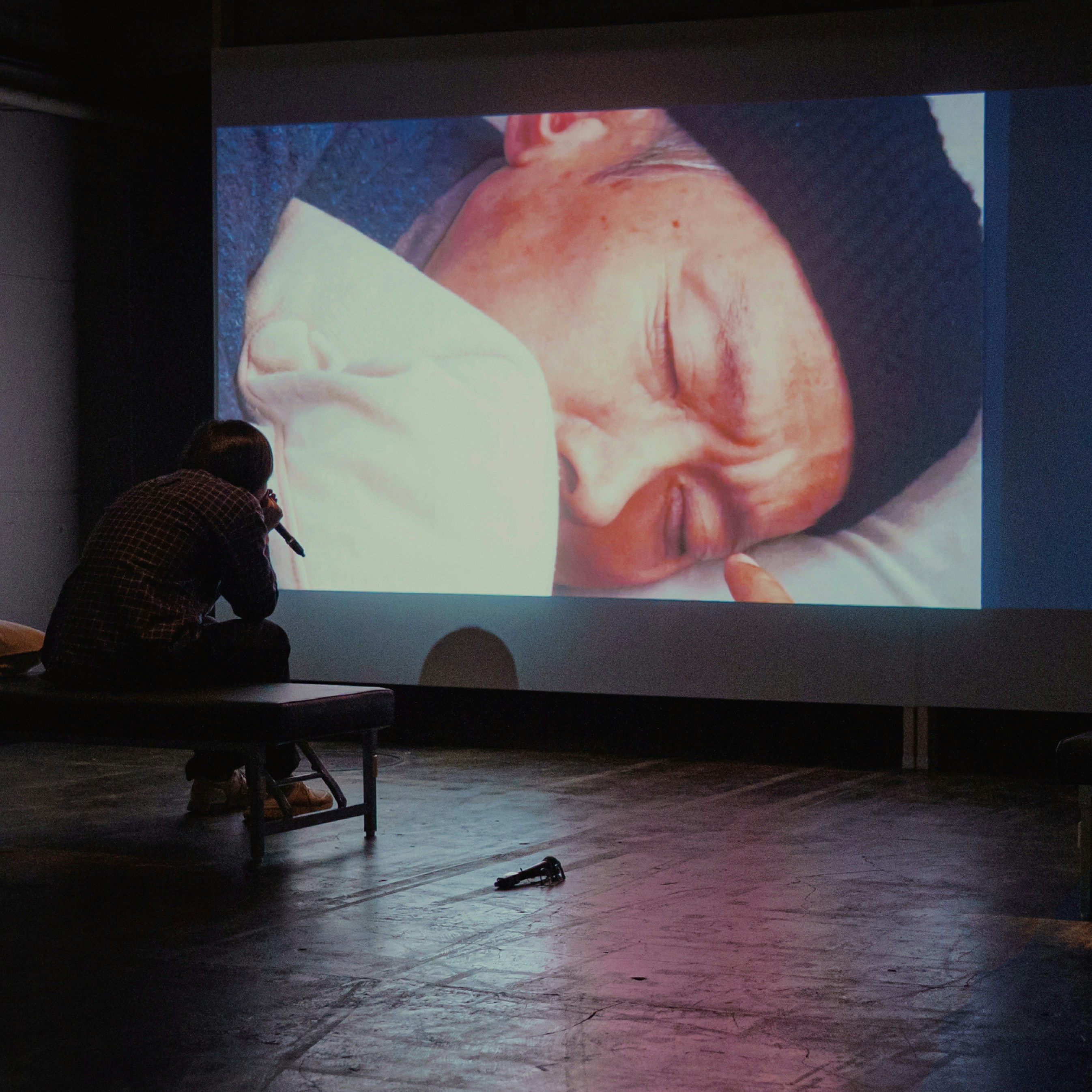 作家個人にとってはきわめて重要で、強い情動をもたらすいっぽうで、他者はそれをありふれたものとして、特段の情動を覚えることなしに受け流すおそれがある映像を用いること。藤中康輝のパフォーマンス/インスタレーション『光の中で眠る』(BUoY)もまた、そのようなアプローチをとる作品であった。というのも本作は、眠る家族の姿を、藤中自身と思しき撮影者がとらえた映像を中核としていたからだ。