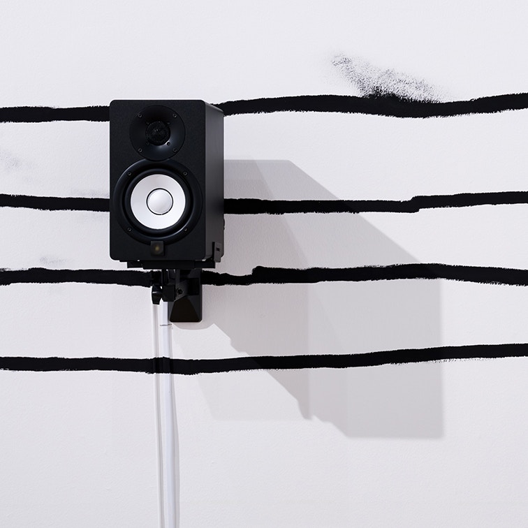 一緒に描かれている音符は「ある存在を伴って空間を移動する人のようなイメージ」だとキムは話している。音符は四線上ではなく、その外側に描かれている。楽譜に描かれている音符は音を奏でる記号である、と譜面を読むのが西洋の伝統的な音楽のうえでは常ということになっているが、この音符は音を発しない。これらは社会の支配的な枠組みの外側の存在を示唆している。音符の周りの線はその音符を囲う波紋のように湾曲し、四線に影響を与えている。彼らの声は音を発さずともそこに存在しているのだ。