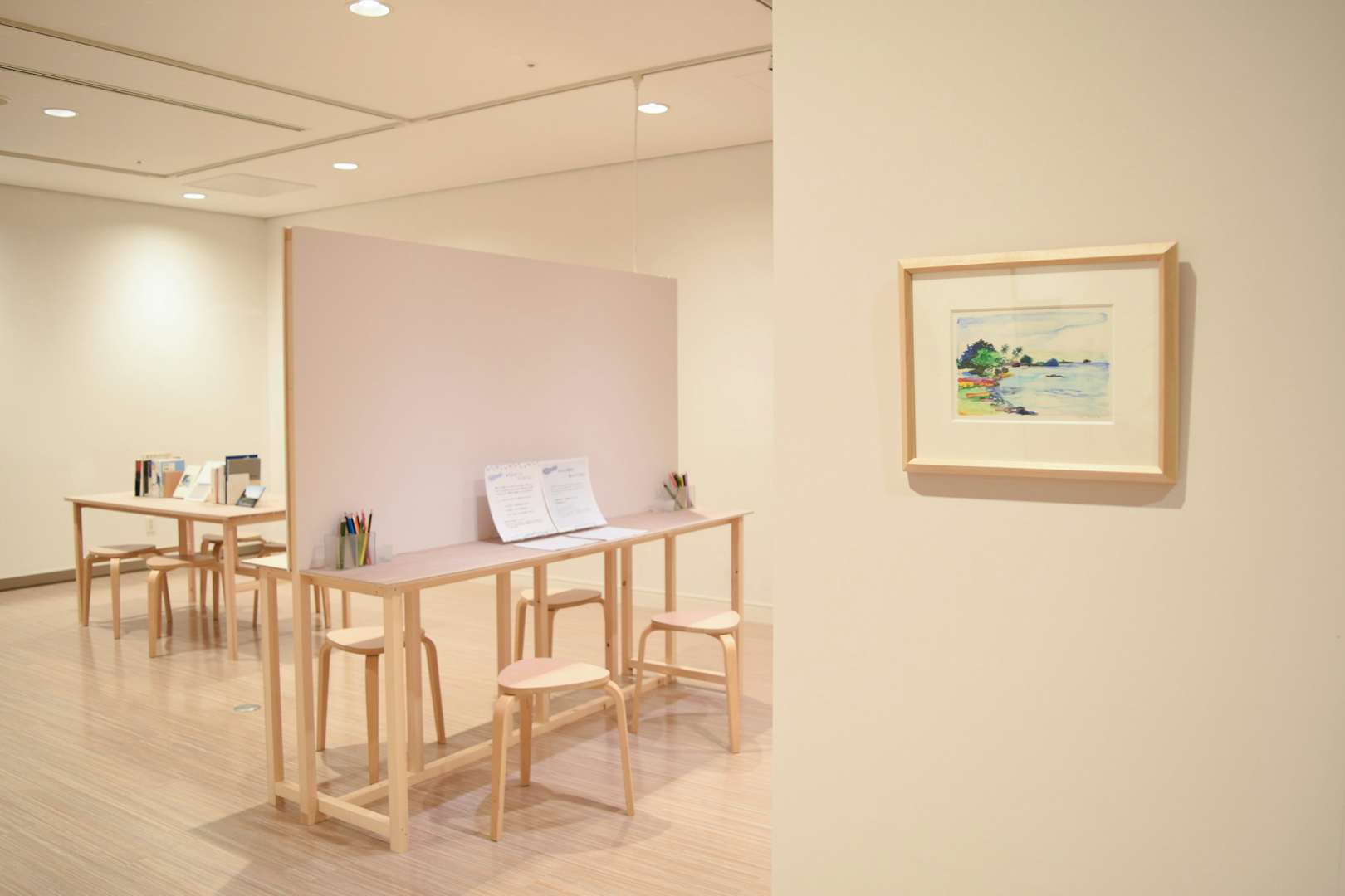 最後に、本展が鑑賞者の参加を求めるものだという点にも言及しておきたい。展示室内には「オープンワークショップ」のコーナーがあり、そこで鑑賞者(あるいは参加者)は、「あなたの風景を聞かせてください」「あなたのへびはどんなへび?」と題された2つの指示書きにしたがって、自身の記憶やイメージをもとに絵や文章をつくることが求められる。本展の鑑賞者は、展示物をよく観たあと(*9)、小森+瀬尾による呼びかけにしたがって(小さな)物語づくりに参加することによって、「まだ出会ったことのない人たち同士がともにいられる“居場所”のような物語」をつくるという主題の(再)構成に関与することができるのだ。では、その来たるべき「物語」は、いかなるつながりとへだたりからなるのだろうか(*10)。