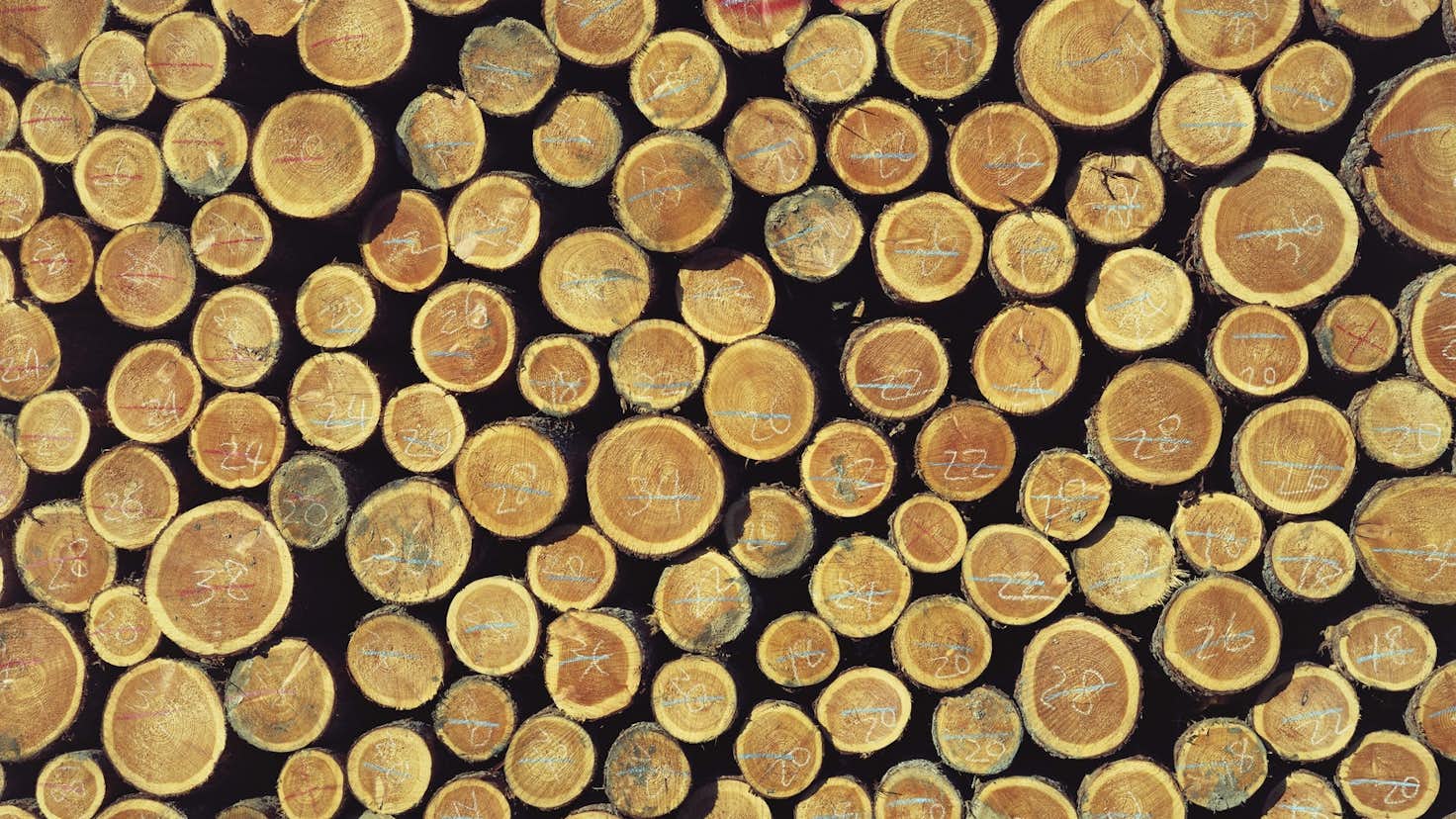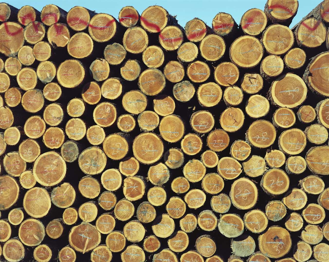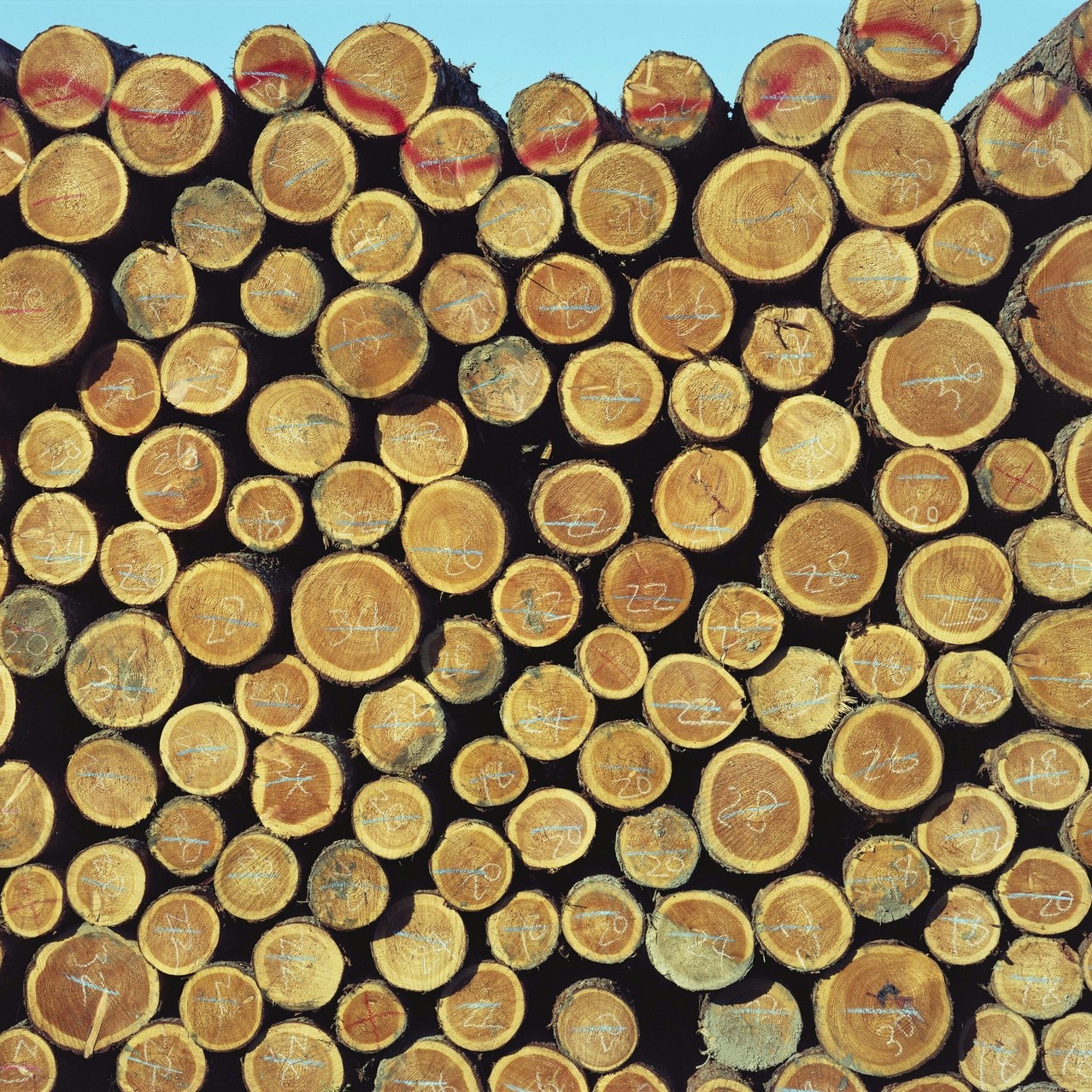 しかし、確かにそれらと異なるタイプの作品も本展には存在する。1つめは、いわば被写体が人工的かつ有機的な作品である。《岩手県奥州市》(2018)は大量に積み上げられた丸太の写真であり(*4)、それらの丸太のひとつひとつには直径が記され、また、なにかの印として赤色または水色の線が引かれている。注目すべきは、積み上げられた丸太が植物そのものでありながら、同時に林業に従事する人間によって形成されたものでもあるという点だ。つまり、どちらかの側面が脇役になることなく、それらがほとんど区別不可能なかたちで一体となっているのだ。