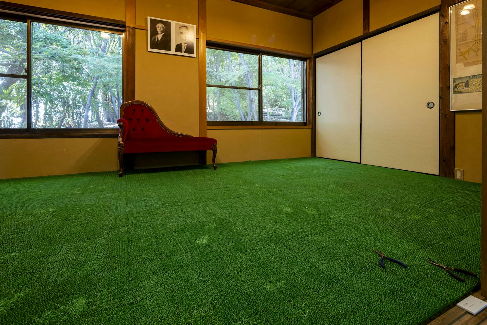 美術館のない愛知県大府市において、同時代の美術や文化芸術を発信する試みとして2016年より継続して開催されてきた「アートオブリスト(Art Obulist 大府芸術目録)」。10年目を迎える今回、プロジェクトの生みの親であるアーティスト・渡辺英司と、同姓同名の科学者・渡辺英治の2人による展覧会が開催された。芸術と科学という異なる分野に横断して掲げられたテーマは「知覚」。国登録有形文化財の建築を有する大倉公園(*1)には、2人の「策士」による多彩な仕掛けが施された。