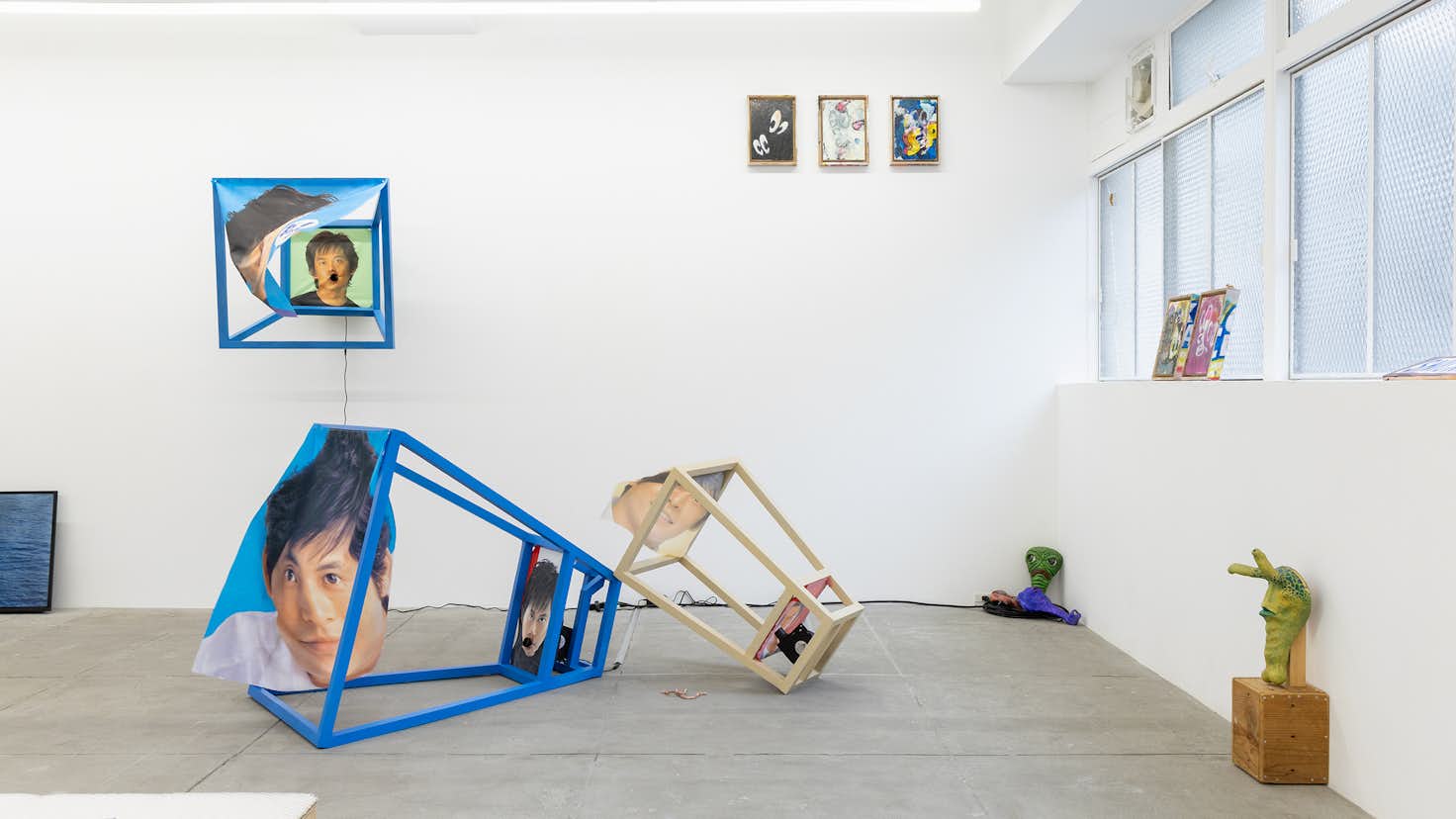 KINJOは出展作家である大塚諒平とともに、荒川での野外展示「Riverside pocket」を行ってきた。そこでは、人々の生活動線のすぐ横に作品が置かれ、偶然その作品に出くわした鑑賞者、その作品と周囲の環境との緩やかなつながりが生まれた。つまり、「場」とはあらかじめ存在する場所ではなく、人・作品・環境が交差する出来事として立ち上がるものであるということを、このタイトルは意味しているのだろう。本展は、この野外での実践をギャラリーという室内空間に移し替えること──すなわち「屋外の出来事としての場」を屋内で再構成すること──を出発点としていた。