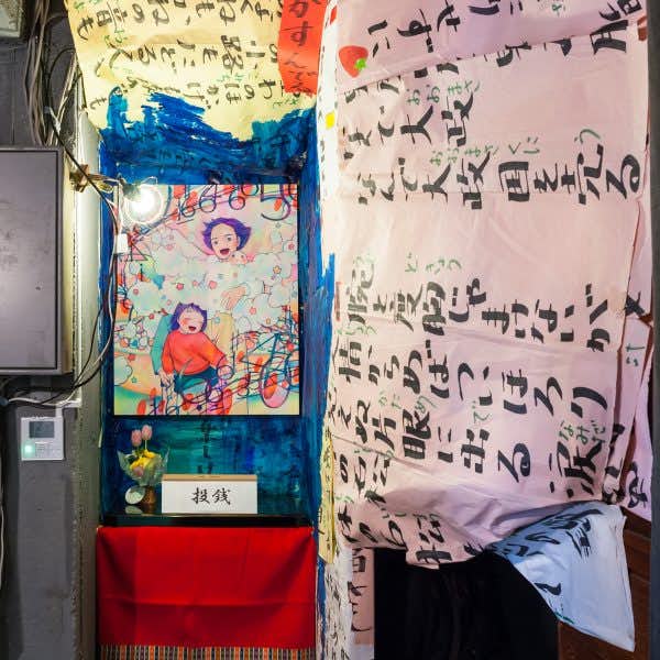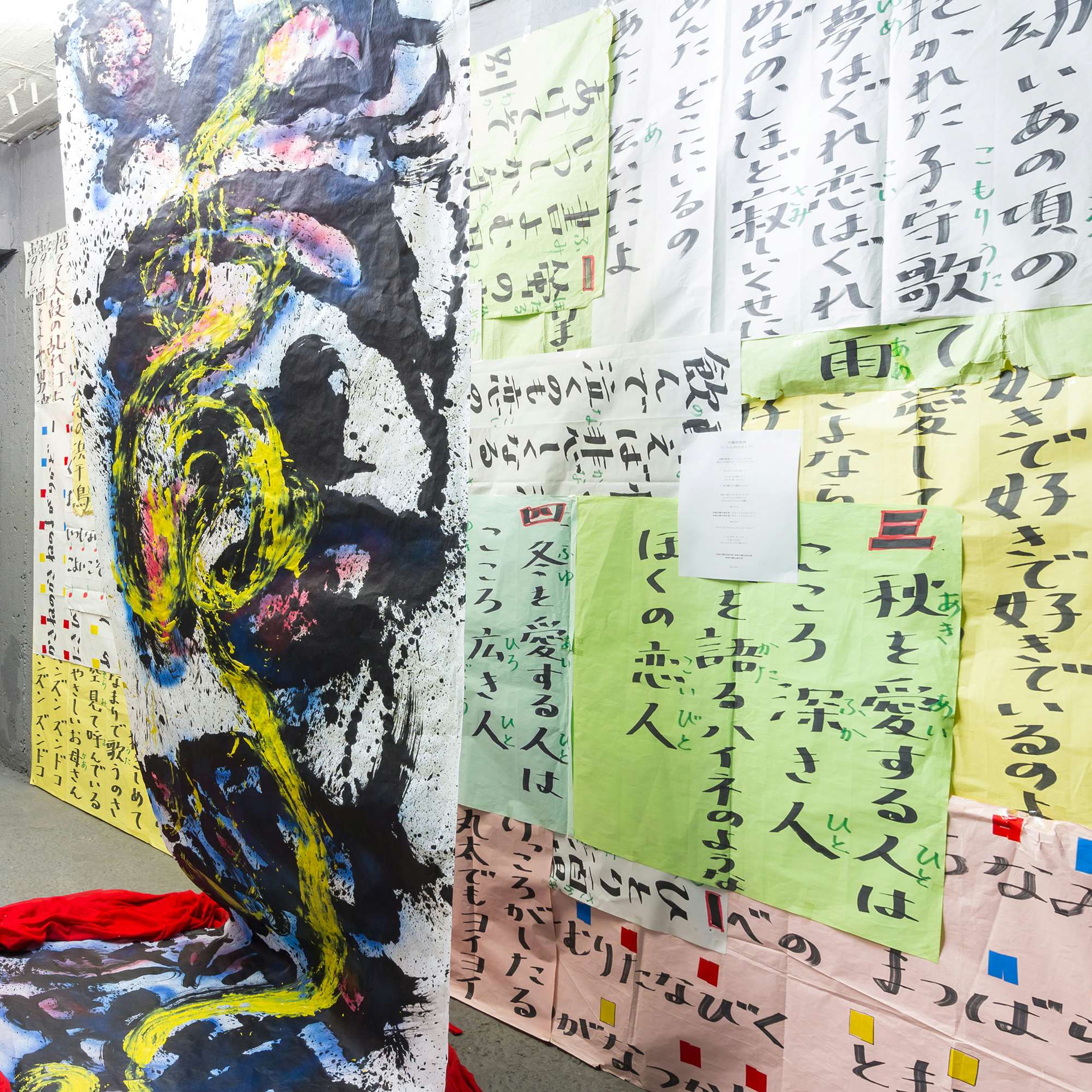 通常の美術展は、順調な時間と空間の運用を前提にしてそれらを問うことがない。入口は入口で、出口は出口としてきちんと機能を果たさなければ展示が成り立たない。ところが本展では、展示の一部が会場の入口=出口から外に漏れ出し、入口=出口でなくなることで、いつなにが起きてもおかしくはない路上へと通じる「穴」と化している。つまり、開口部の付近で原理的には無限回数、堂々巡りが(外も含んで)繰り返されるようになっている。この狭く見通しの悪い開口部にこそ、本展の「Death Line」は引かれているのだと思う。