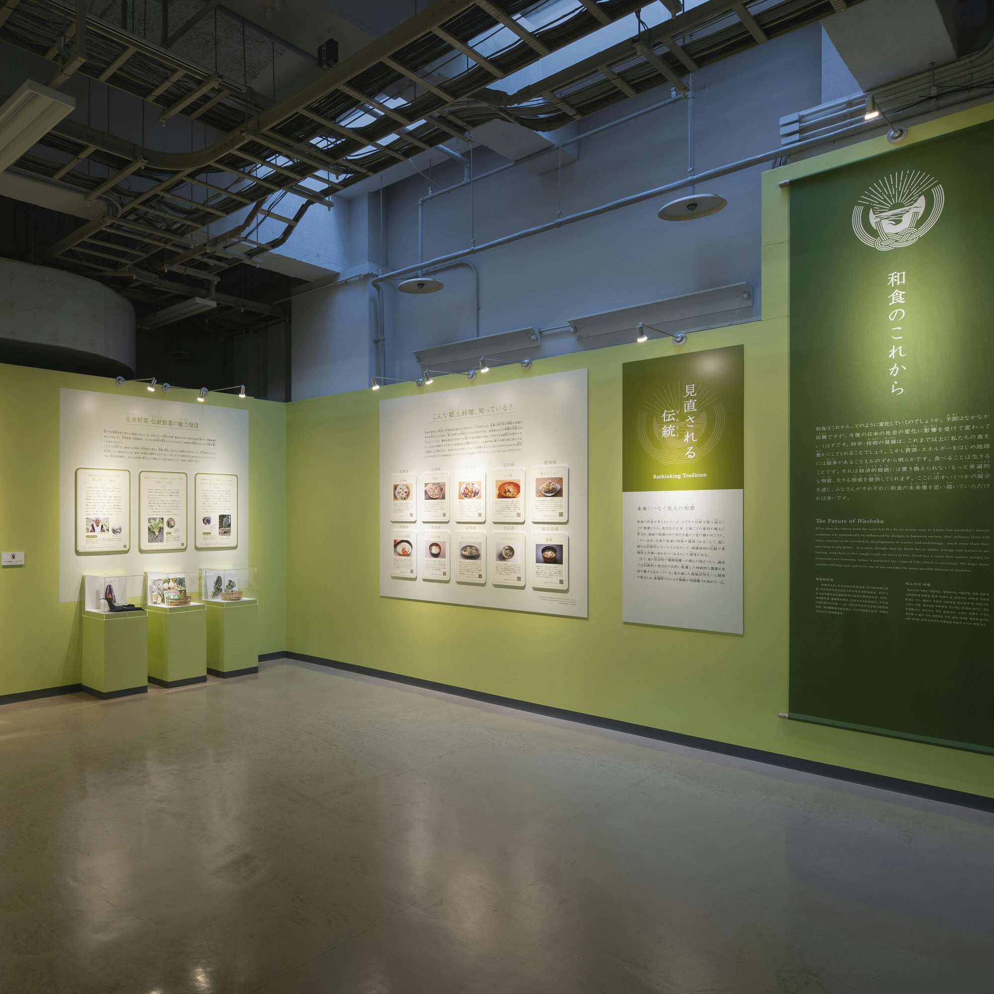 さらに、和食はこれからどのような変化をとげるのか、貴重な食料資源の確保、宇宙生活を目指した研究開発など、未来に向けた最新情報を紹介。また、高精細映像やインタラクティブ・アートも取り入れた映像展示で、和食の世界を体感することも可能。身近な和食を最新の研究や資料とともに探求できる展覧会となっている。