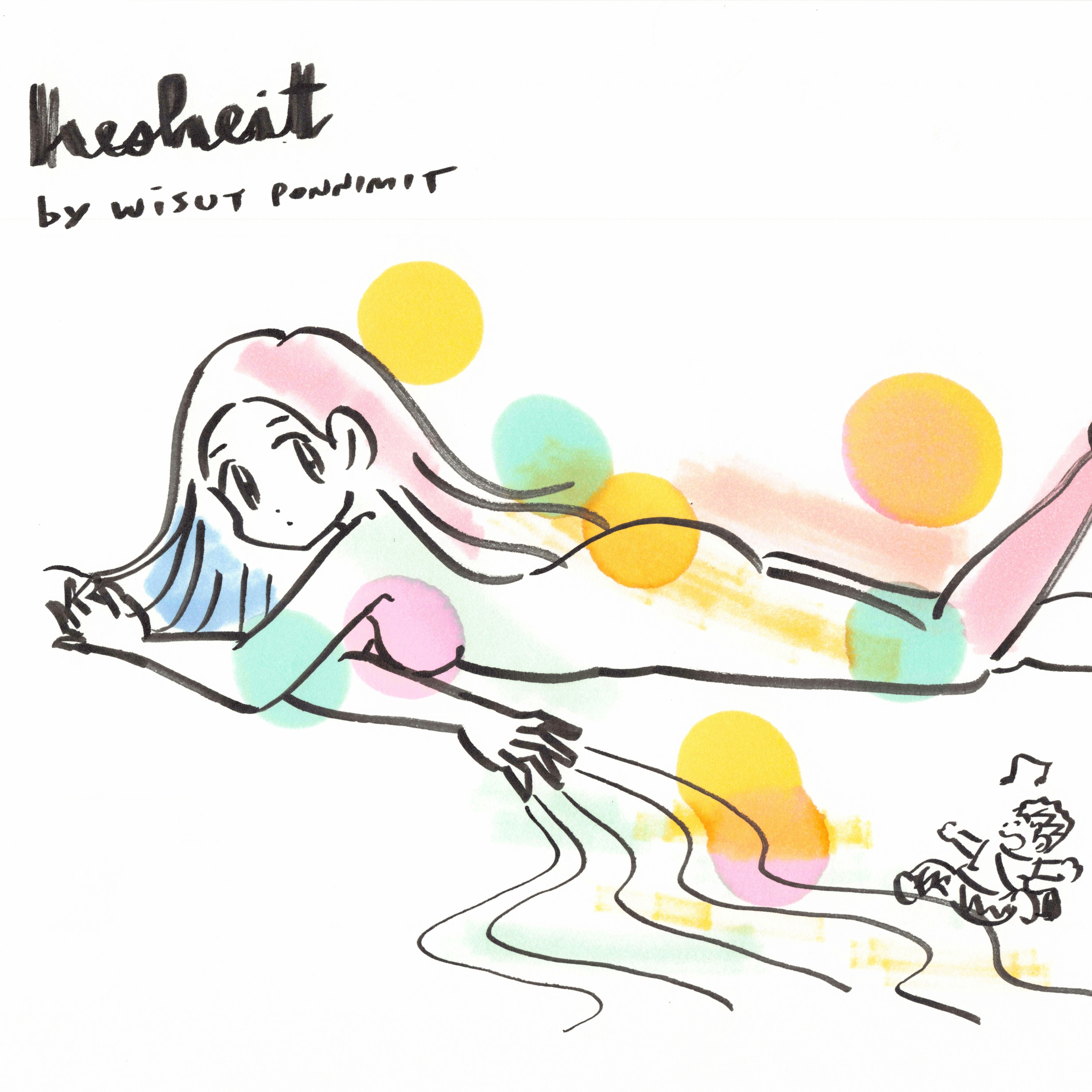 今回の作品に描かれていることは、だいたい自分の経験から生まれたものが多い。腐ったシュウマイの話は、本当にタイの中華街で腐ったようなシュウマイをつばを飛ばしながら売ってくるおじさんに出会った経験から生まれたものなんだ。そのときは「汚い」と思ってシュウマイを買わなかったけど、家に帰ってから「もしかしたらおいしかったかも」とか思い直して、それで絵に描いてみたことが始まり。ほかにも、恋愛のこととか、ちょっとしか会えなかった人のこととか、そういった自分の経験から話をつくったんだ。