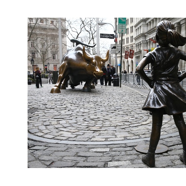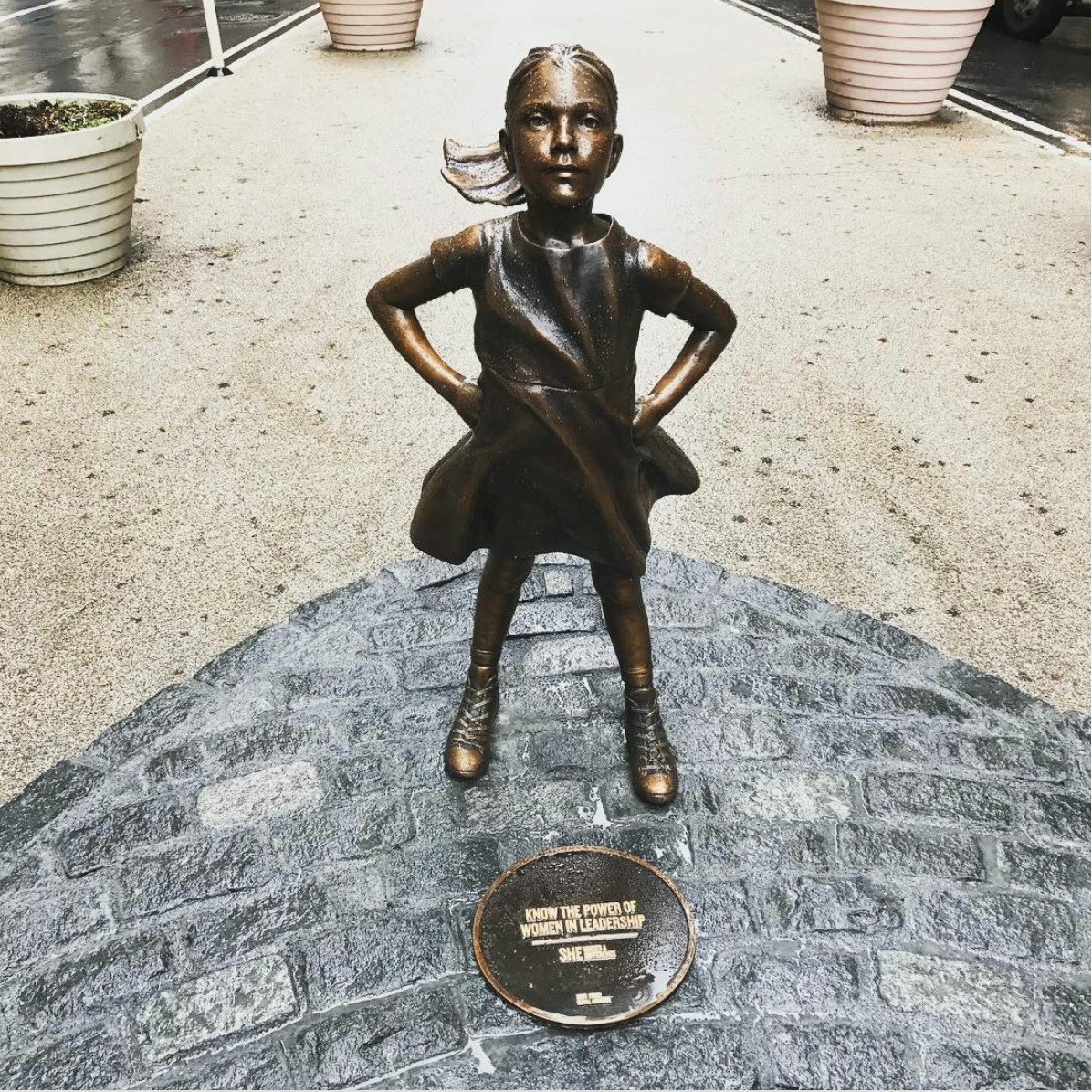 国際女性デーの前日の2017年3月7日、ニューヨークの金融街に設置されていた彫刻家アルトゥーロ・ディ・モディカの《チャージング・ブル》の視線の先に少女の彫刻《恐れを知らぬ少女》(Fearless Girl)が設置された。投資会社ステート・ストリート・グローバル・アドバイザーズと広告会社マッキャンの委託でクリステン・ヴィスバルによってデザインされた作品である。