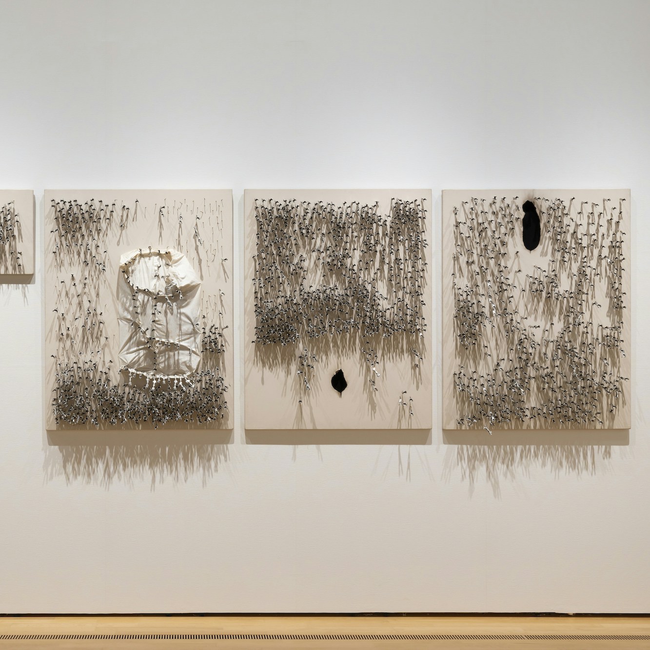 片桐 なるほど、グレーの油絵具と白いキャンバスの間にある黄土色は、油絵具から漏れ出てきた油のシミなわけですね。