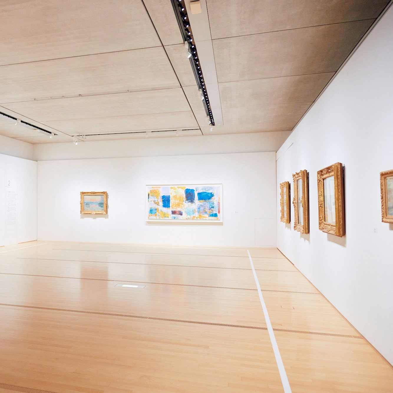 内呂 ポーラ美術館は周囲の森に沈み込むように設計されていて、建物自体も見どころのひとつですね。ちなみに、絵画が時代を進むにつれ、周りを飾る額縁もまた変化していきます。日本の近現代の作品を見てみましょう、額縁すらもなくなっていきます。