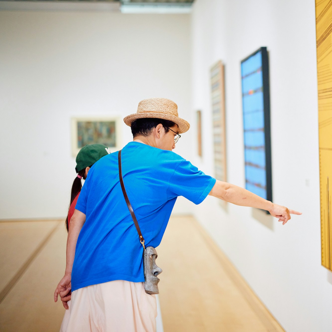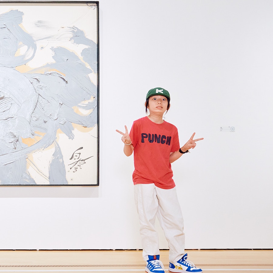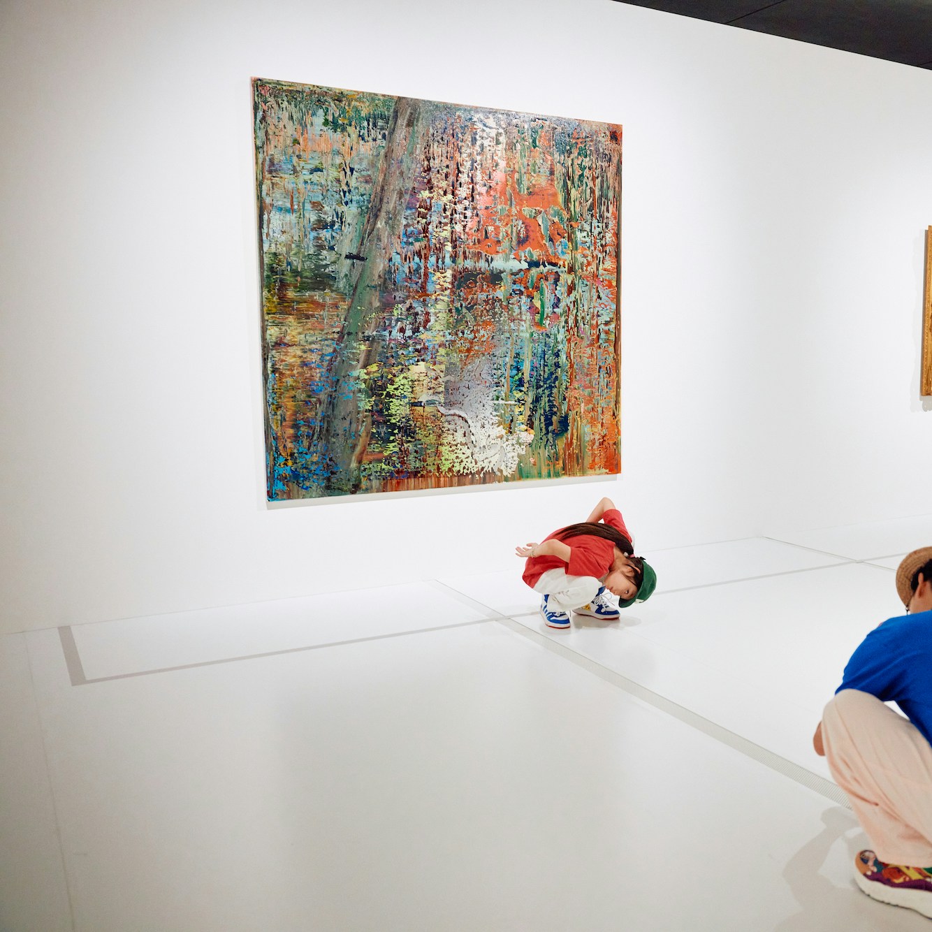 片桐 おお、リヒターだ。モネと並んで見られるなんて豪華だなー。春太、これどうやって描いてるかわかる? スキージっていう大きなヘラをつかって、横に引っ掻いて描いているんだよ。そうだ、せっかくなんで写真撮ろう。春太、ポーズポーズ!