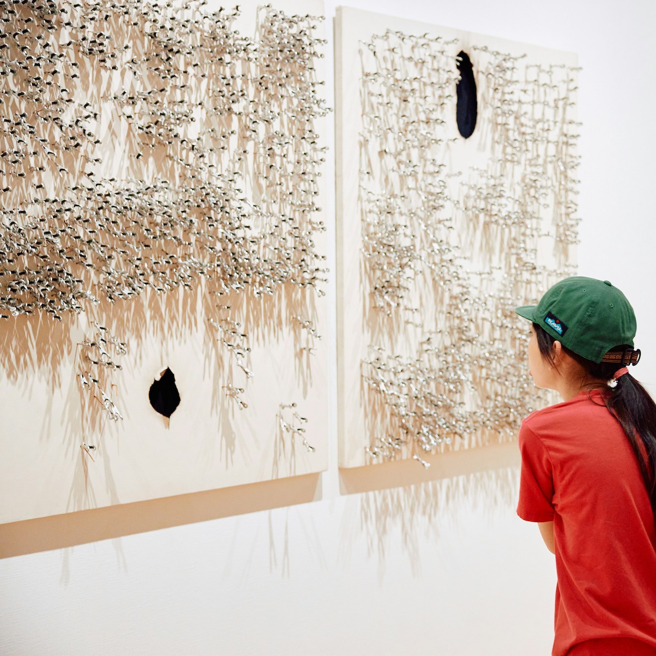 内呂 抽象的なモチーフだと、何に見えるか人によって異なるから語り合うのが面白いですよね。続いては具体美術協会(具体)の作家など、より物質性を探求した作家たちの作品を見ていきましょう。