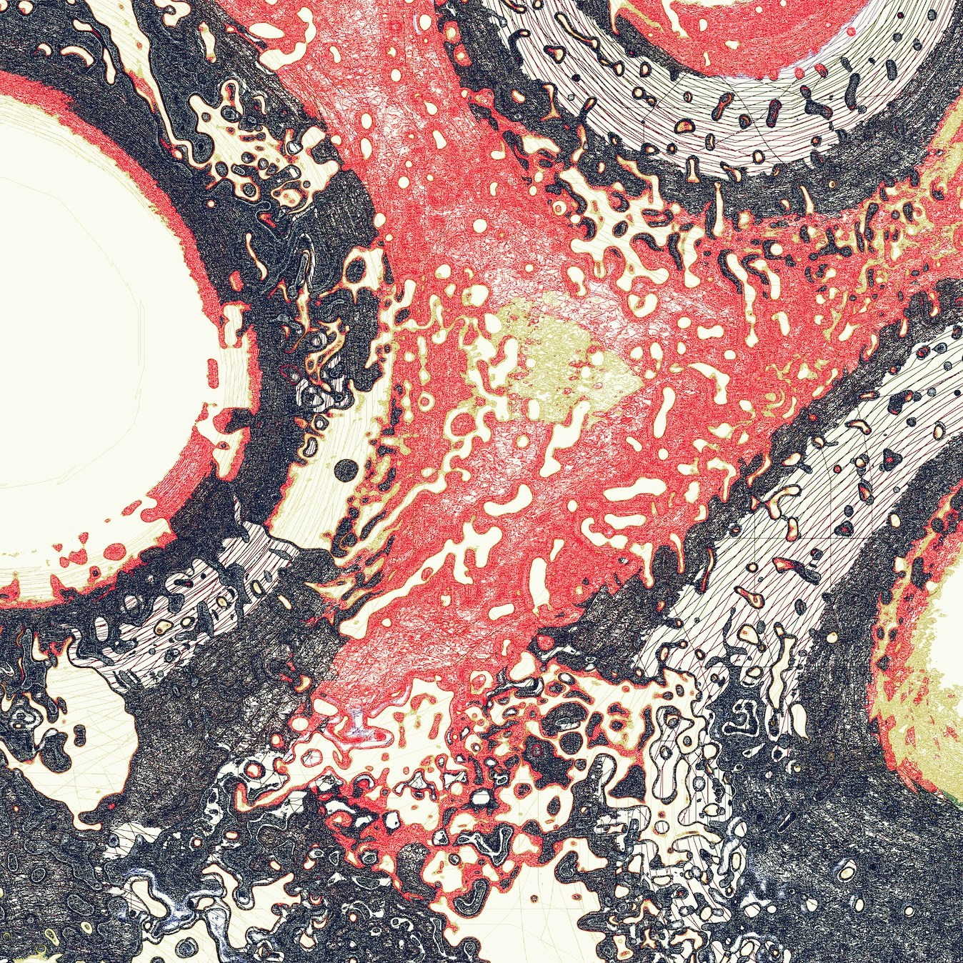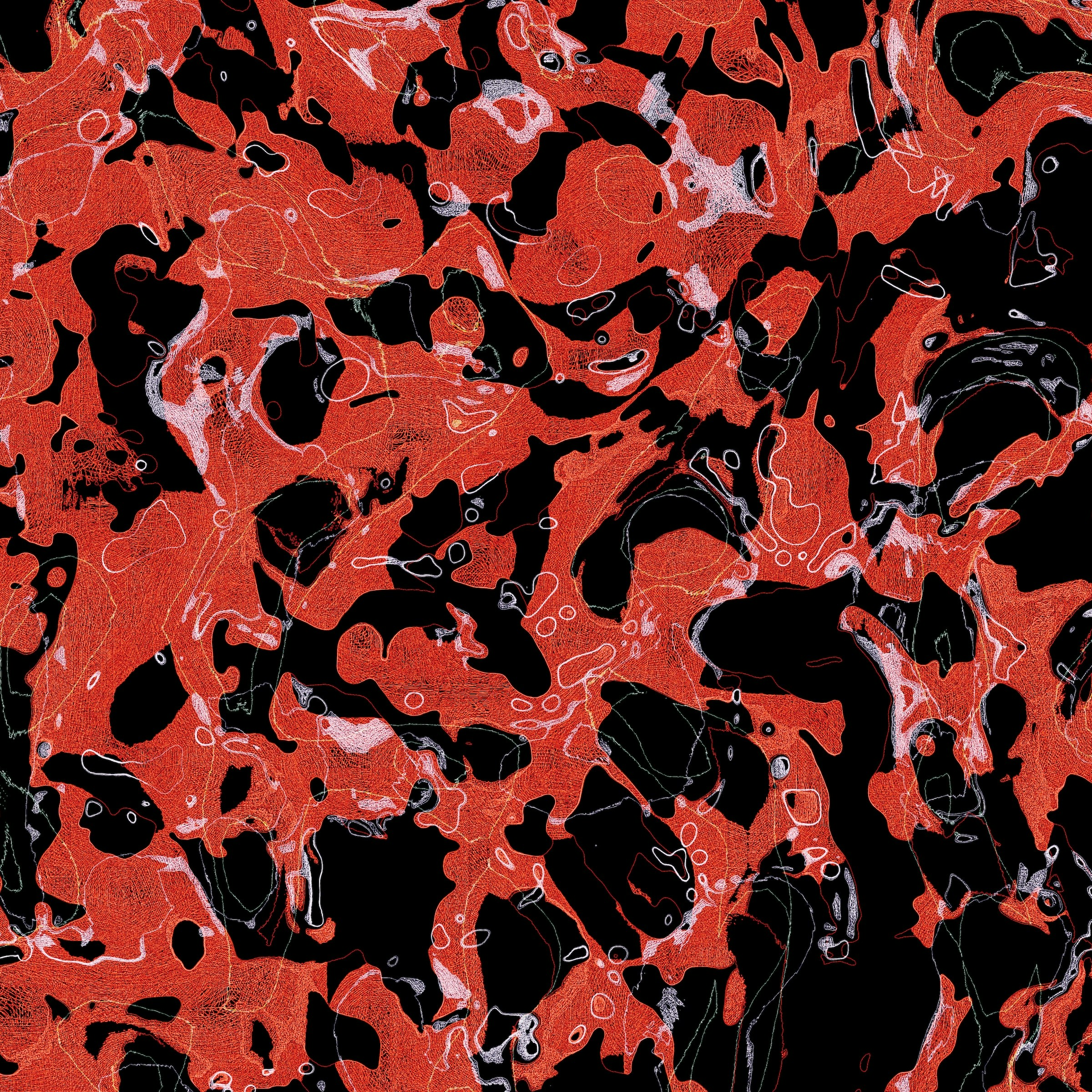 そこでアニメーションから静止画を連続的に吐き出し続けるシステムを組んで、大量の画像をつくっていきました。それらを眺めながら、ピンとくるものをピックアップして発表していくのです。以来、コードを微妙に書き換えながら、「ちょっと構図感とリズムを変えたい」「いい感じの絵柄になってきた」などと調整する日々が続いていきます。大きい鍋で何かを煮込み続けているような感覚ですね。