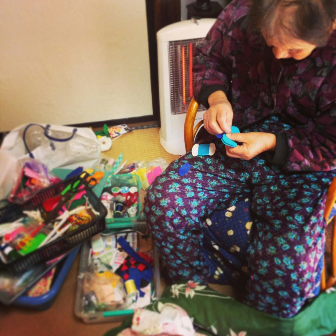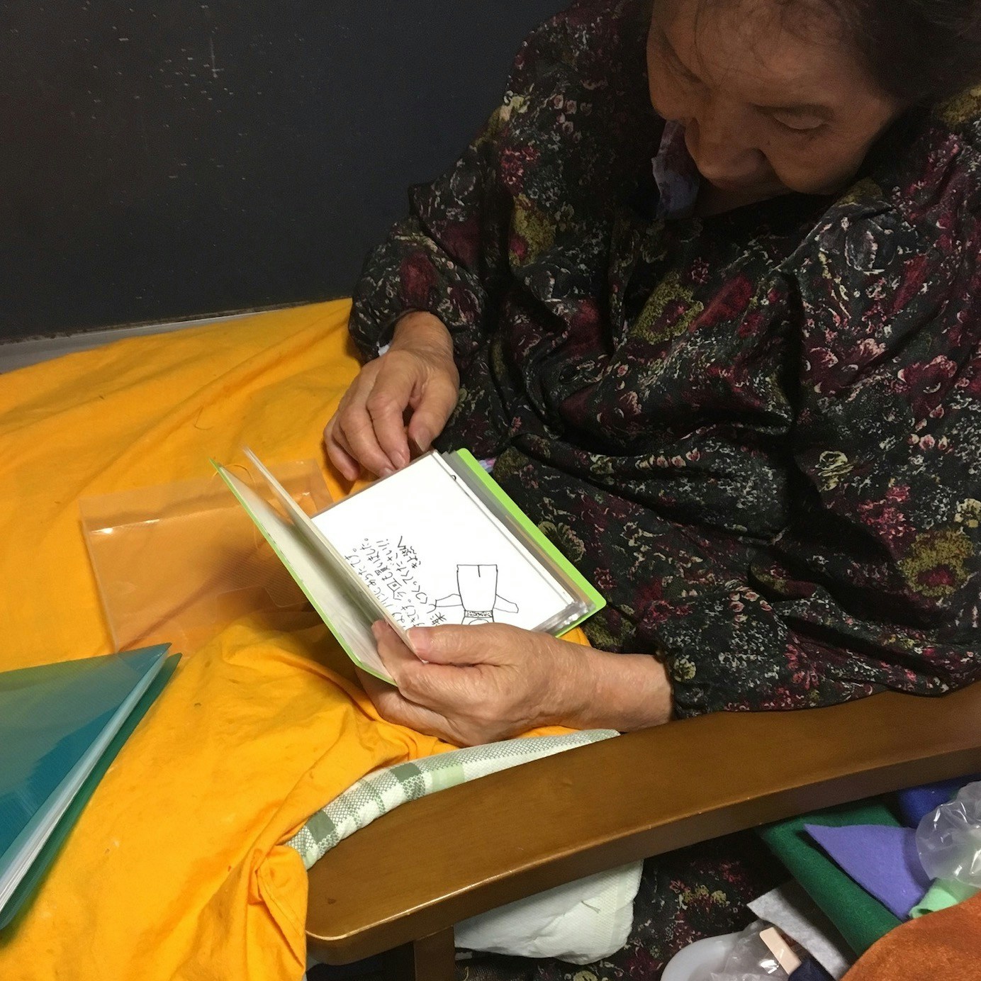 1987年に生まれた志賀さんは、両親が共働きだったため、きよゑさんにご飯をつくってもらうことも多かった。いわゆる「おばあちゃん子」として育った志賀さんにとって、そのときの恩返しをするように、2012年から東京近郊や静岡、長野、熊本など全国各地で「ぼけぼー」の展示を続けている。志賀さんの両親と弟と同居をするきよゑさんにとっては、「ぼけぼー」の制作は、できあがった作品を家族で称え合うなど、家族間のコミュニケーションのひとつにもなっているようだ。当初は、作品が知れ渡ることを恥ずかしがっていたというきよゑさんだが、展覧会場で記された感想ノートをいまも大事にベッドの下に仕舞っているというから、たくさんの人の声援がいかに彼女の制作を後押ししているかが分かるだろう。