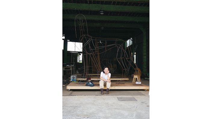ブルーシートや鉄、コンクリートなどの工業製品を用いた彫刻作品を制作し、各地の芸術祭を中心に大規模なインスタレーション作品を発表している久保寛子。これまでも主題としてきた「ゴッデス(女神)」をタイトルに掲げた個展の開催を機に、彫刻制作をめぐる思考とその精神性を聞いた。