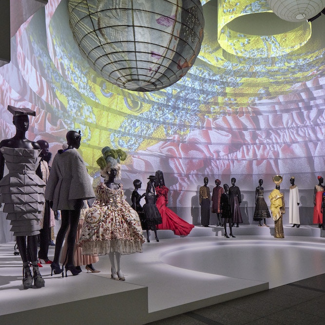 ファッションのみならずあらゆるカルチャーに影響を与えた伝説的なファッションデザイナー、クリスチャン・ディオール。本展は、そのディオールが1946年に創設したクチュールメゾン「ディオール」の創設70周年を機にスタートしたプロジェクト。13ものセクションで、クリスチャン・ディオール、イヴ・サン=ローラン、マルク・ボアン、ジャンフランコ・フェレ、ジョン・ガリアーノ、ラフ・シモンズ、マリア・グラツィア・キウリといった歴代のクリエイティブ ディレクターたちの作品が並び、ディオールクチュールの全貌、そしてディオールと日本との関係をも紹介するものだ。