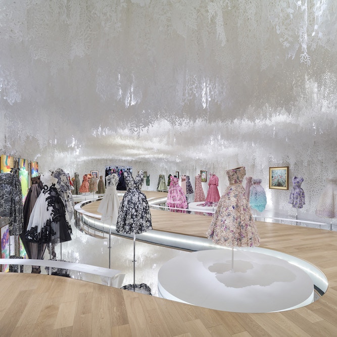 「クリスチャン・ディオールはファッションデザイナーになる前に建築家を志していた。オートクチュールのつくり方は建築とも親和性がある。オートクチュールは特定の人に対するユニークなものとしてつくられるが、建築もまたオンリーワンなもの。オートクチュールも建築も、人がいて、人に纏われて初めて成り立つアートフォーム。その共通点を意識し会場をデザインした」。