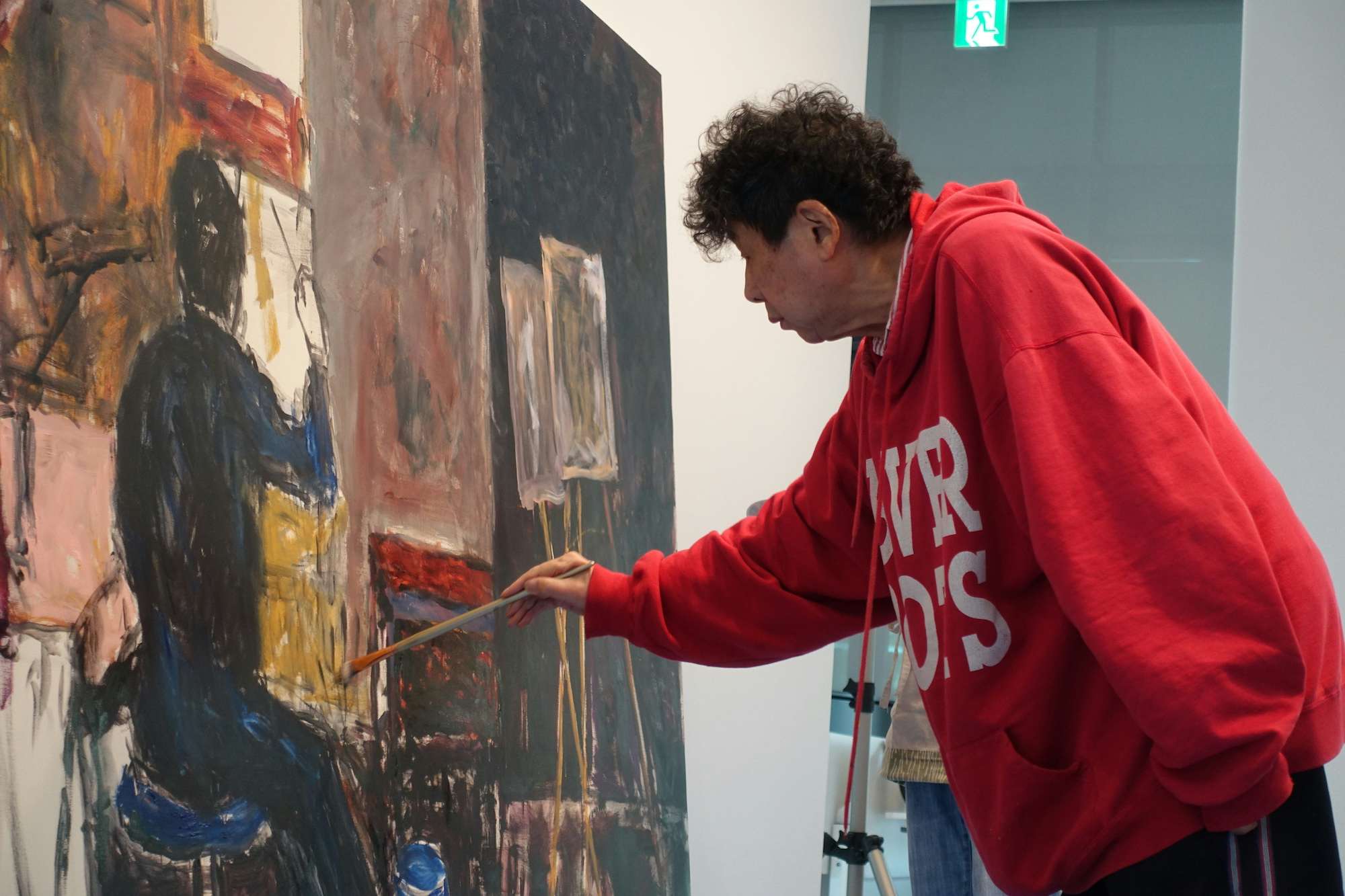 「大公開制作劇場」より、公開制作中の横尾 提供=横尾忠則現代美術館