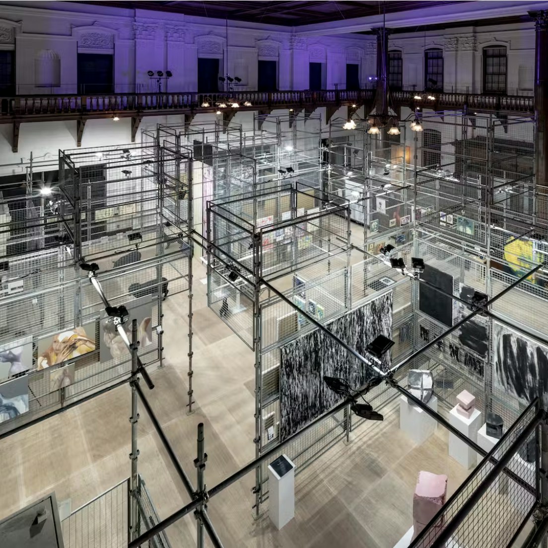 名和 作家たちが金網の中に入って戦うようなかたちにしたのは、椿さんの仕業です(笑)。グローバルのアートマーケットがホワイトキューブのフォーマットばかりを使いすぎていておもしろくない、せっかくアーティスト主体の企画をするなら、逆を行くんだという考えがあってのことだと思います。