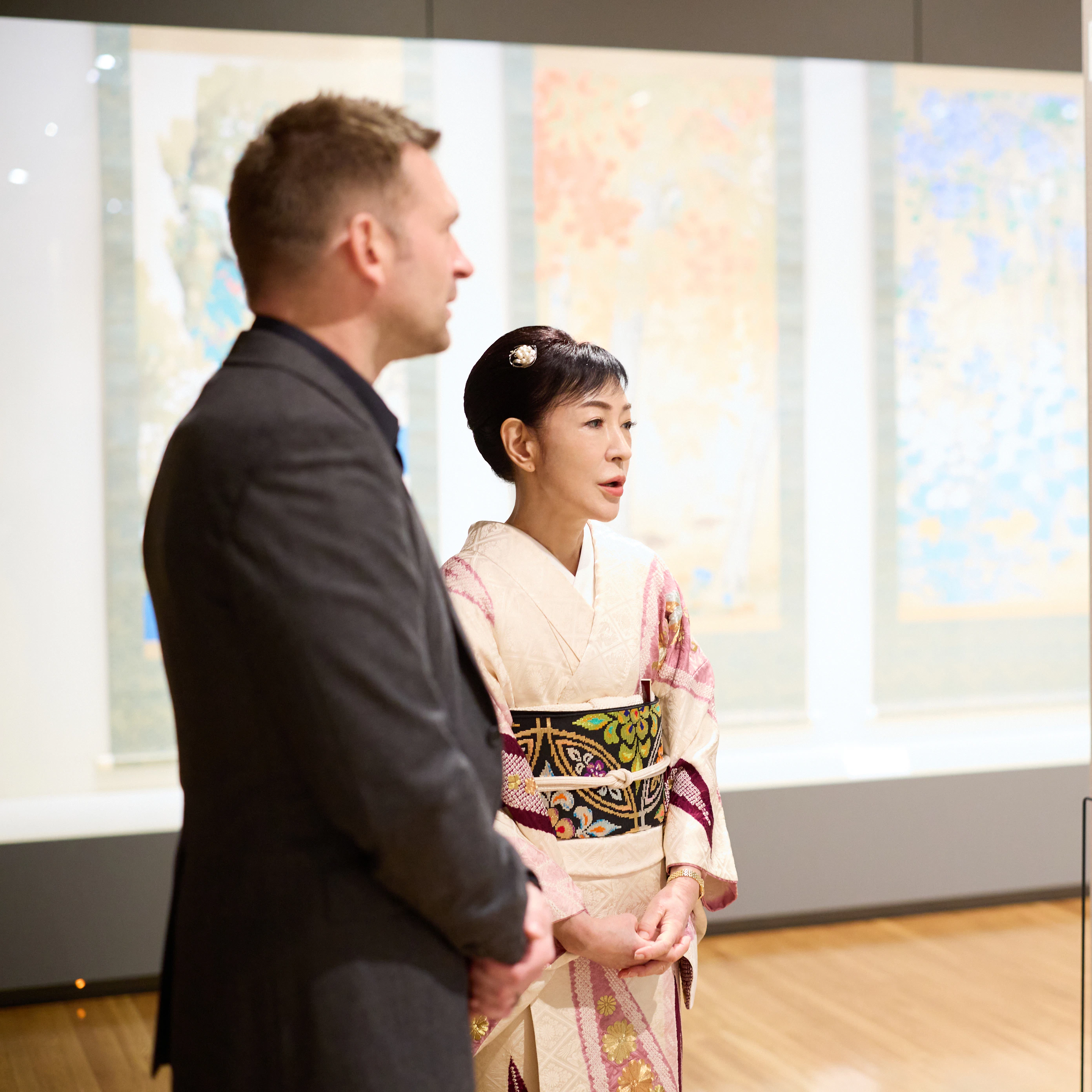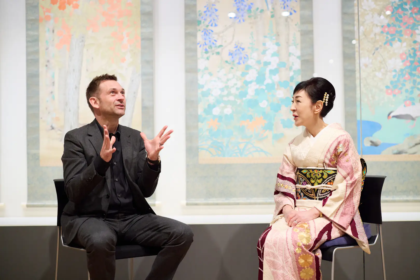 デンマーク出身のフラワーアーティスト、ニコライ・バーグマン。ヨーロッパのフラワーデザインスタイルを礎に、日本の繊細さを融合させた独自のスタイルは、国内外で評価されている。近年は、花を素材にしたアートワークも精力的に発表している。そんなニコライ・バーグマンが訪れたのは、様々な花の名画を収蔵する山種美術館。現在開催中の展覧会、「花・flower・華 2026」を山崎妙子館長とともに鑑賞した。
