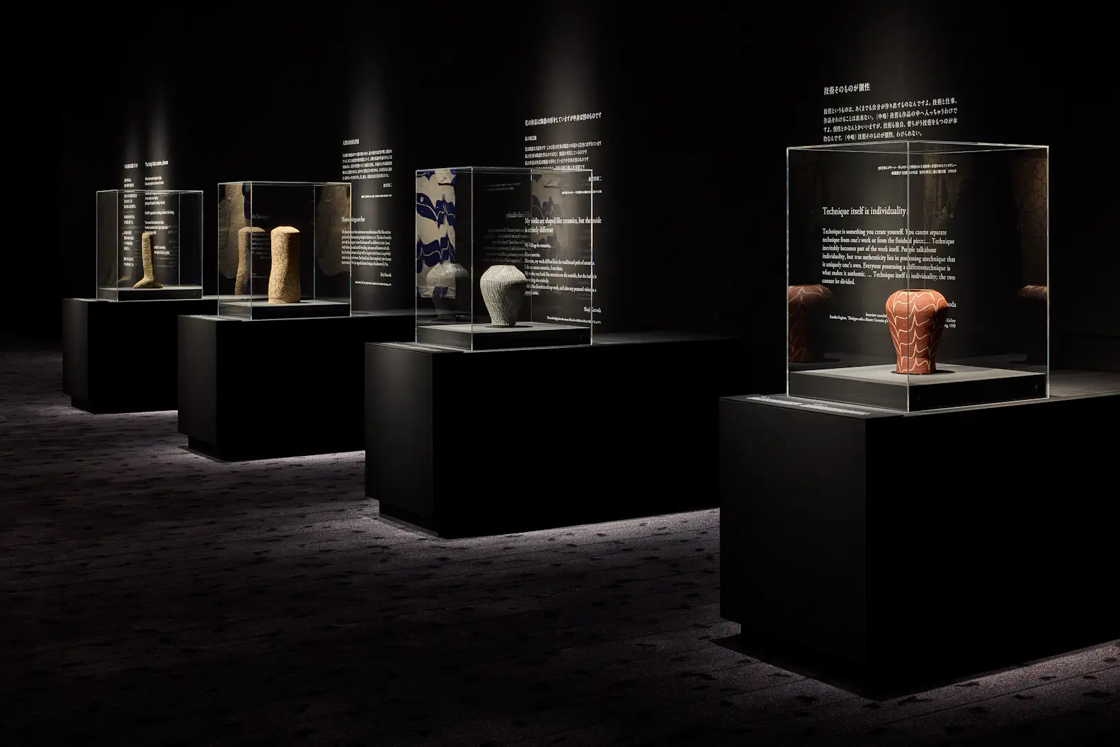 コレクションと向かい合うように会場に並ぶ加守田章二の作品